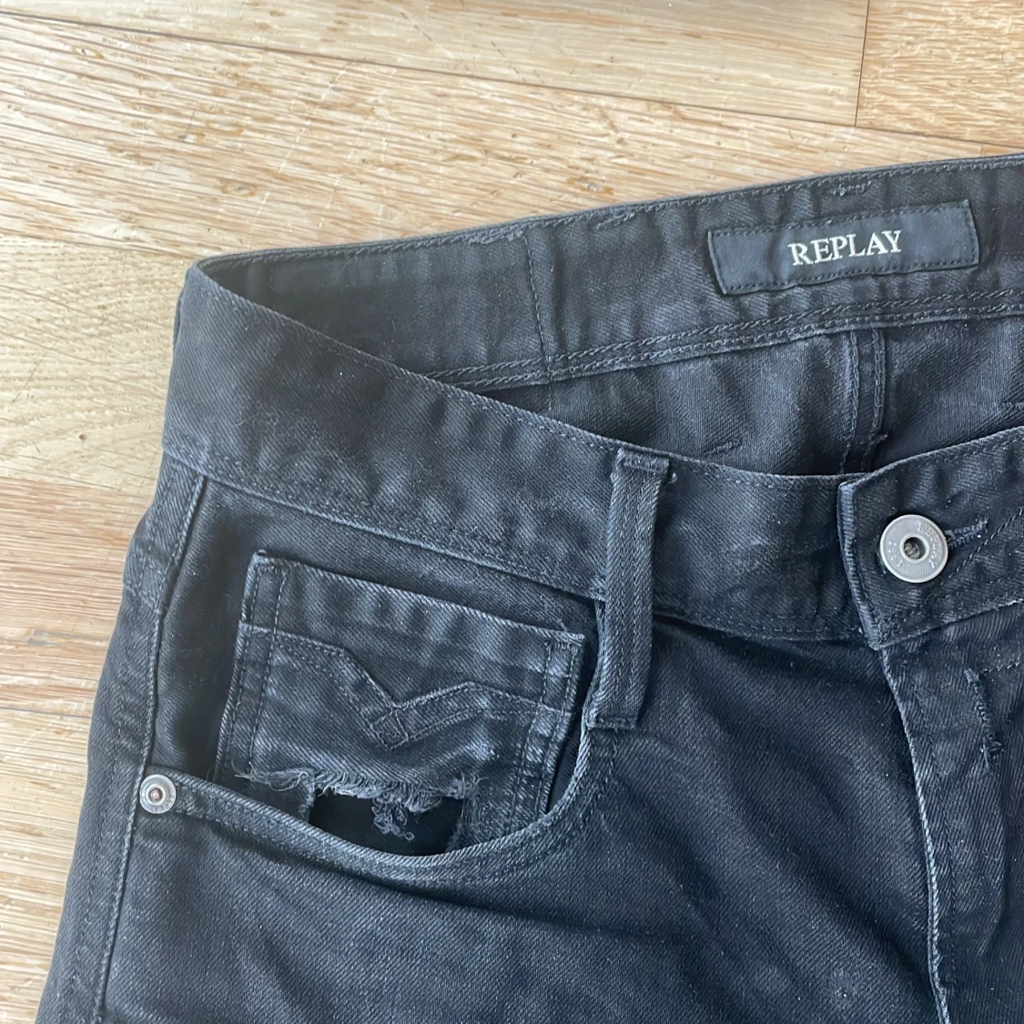 Tjena, säljer nu dessa svin snygga replay anbass i storleken 27/32! Det är en liten slitning(se bild) annars är dom i suveränt skick! Var inte rädd att fråga om du har några funderingar, pris ej hugget i sten! 🪨💫🤩