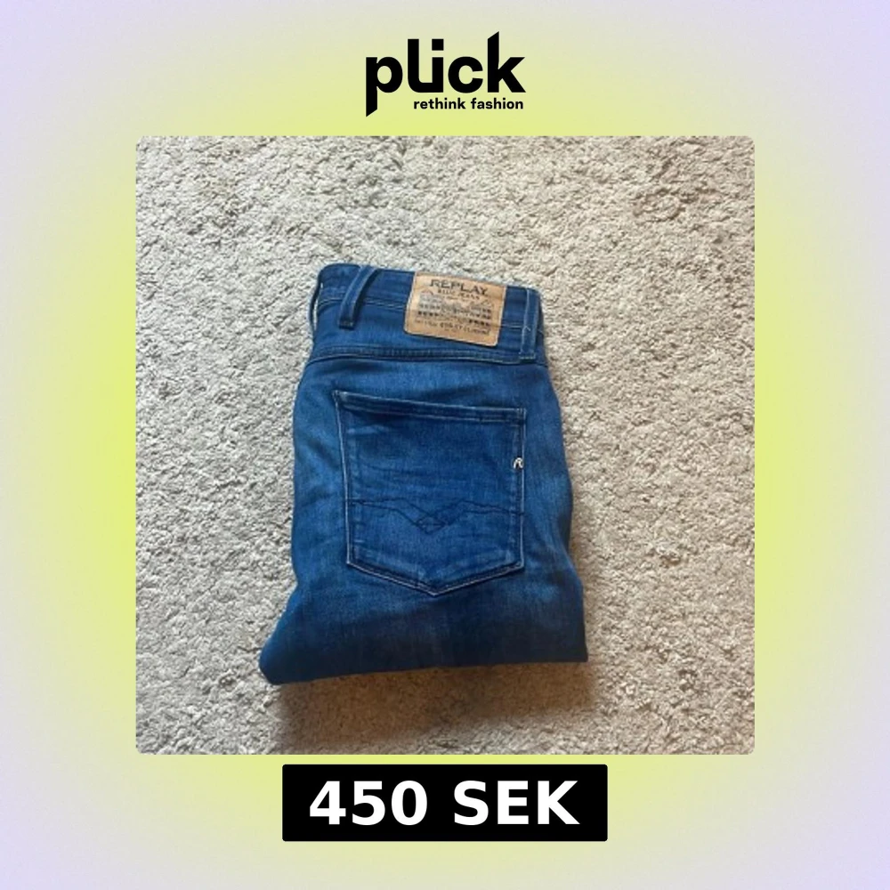 Säljer mina mörkblåa Replay jeans i modellen Anbass! Storleken är 32/32 och priset ligger på 450.