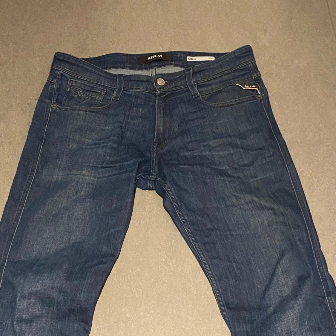 Snygga mörkblå Replay Anbass jeans i slim fit-modell. Klassisk femficksdesign med Replay-logga på bakfickan och läderpatch bak i midjan. Jeansen är tillverkade i ett mjukt och slitstarkt bomullstyg med en smal passform som sitter snyggt.