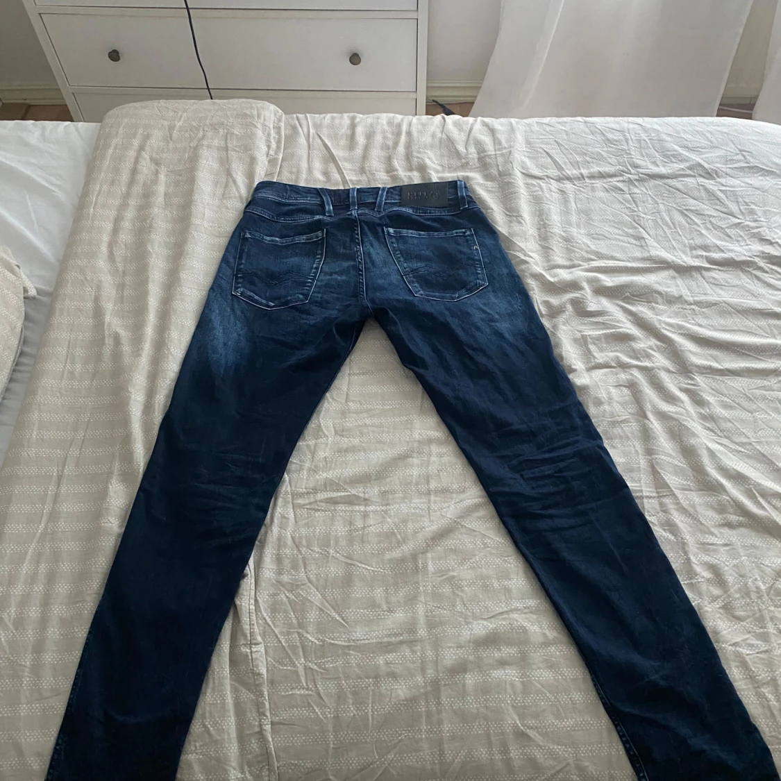 Knappt använda, super snygga Replay Anbass slim fit jeans blå. Dom är lite för stora för mig så tänkte sälja vidare dom. Hör av er vid frågor osv.