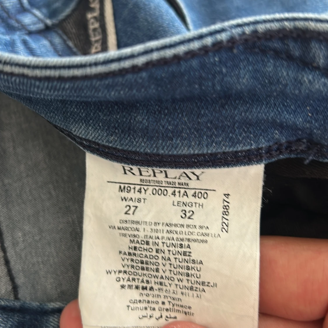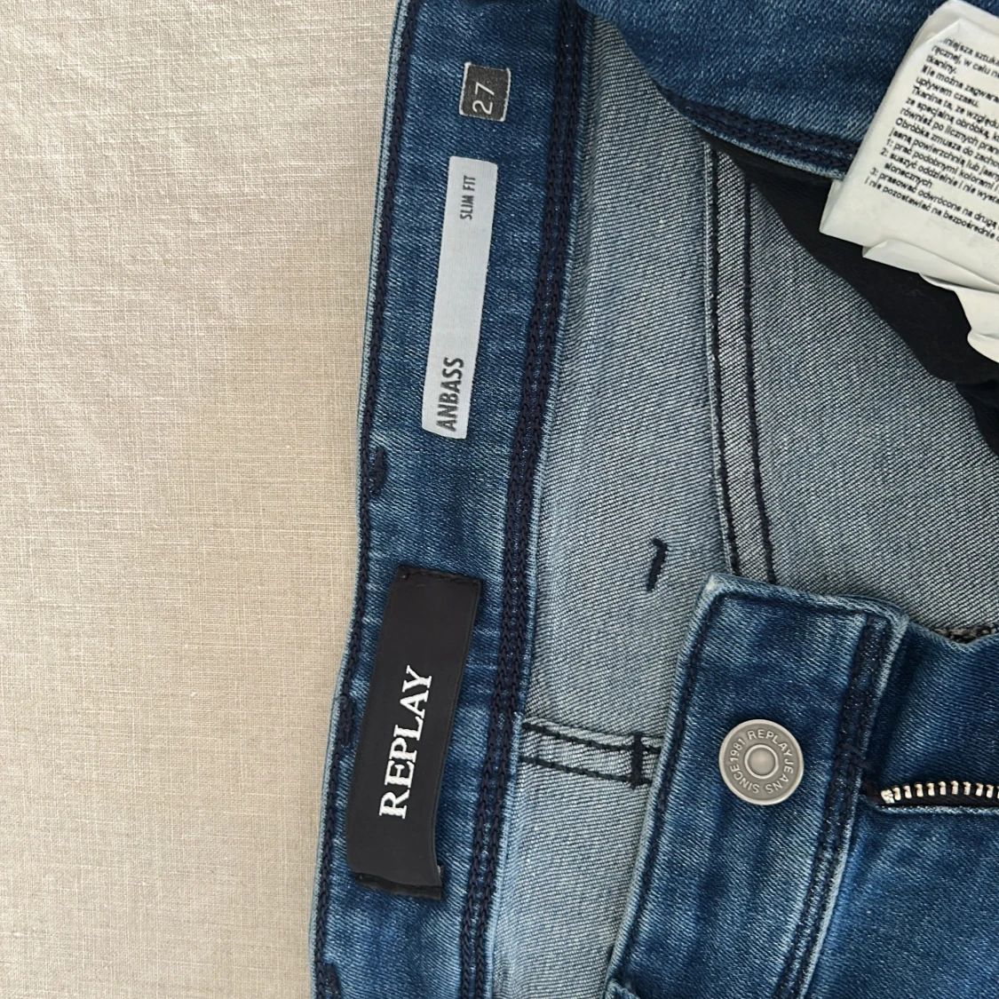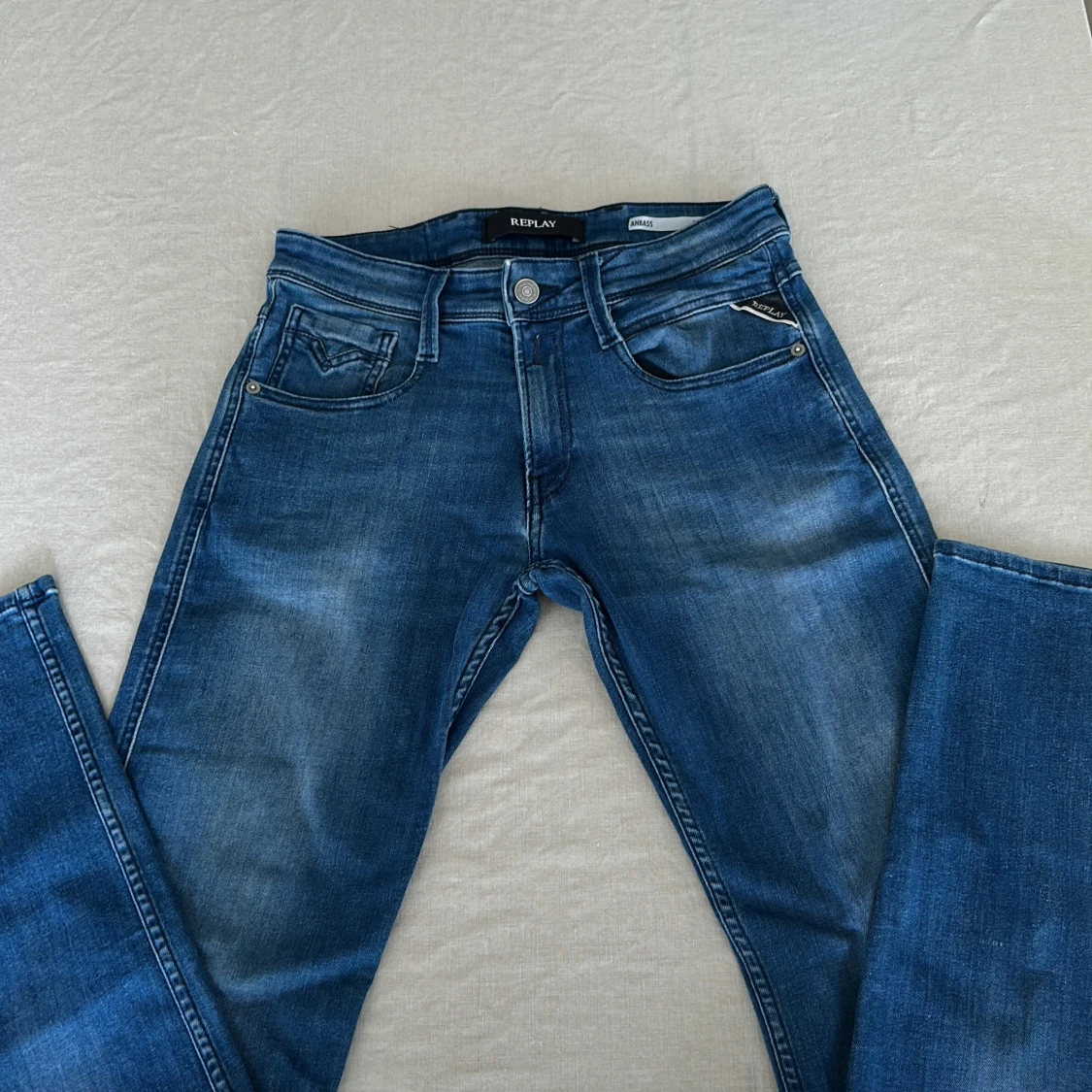 Snygga blå Replay Anbass jeans i storlek 27 men passar både 28 och 29 också slim fit med klassisk femficksdesign och coola slitningar. Jeansen har medelhög midja och raka ben, tillverkade i mjukt denimtyg. Perfekta för dig som gillar en stilren och modern look.