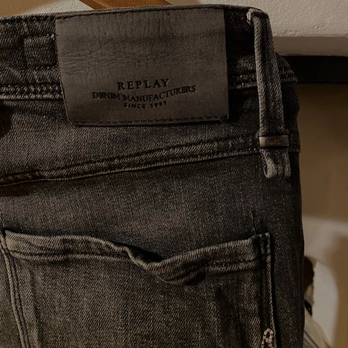 Snygga svarta Replay Anbass jeans med slitna detaljer och klassisk femficksdesign. Jeansen har en smal passform och är tillverkade i stretchig denim för extra komfort. Perfekta för dig som gillar en modern och stilren look. Storlek 29:30