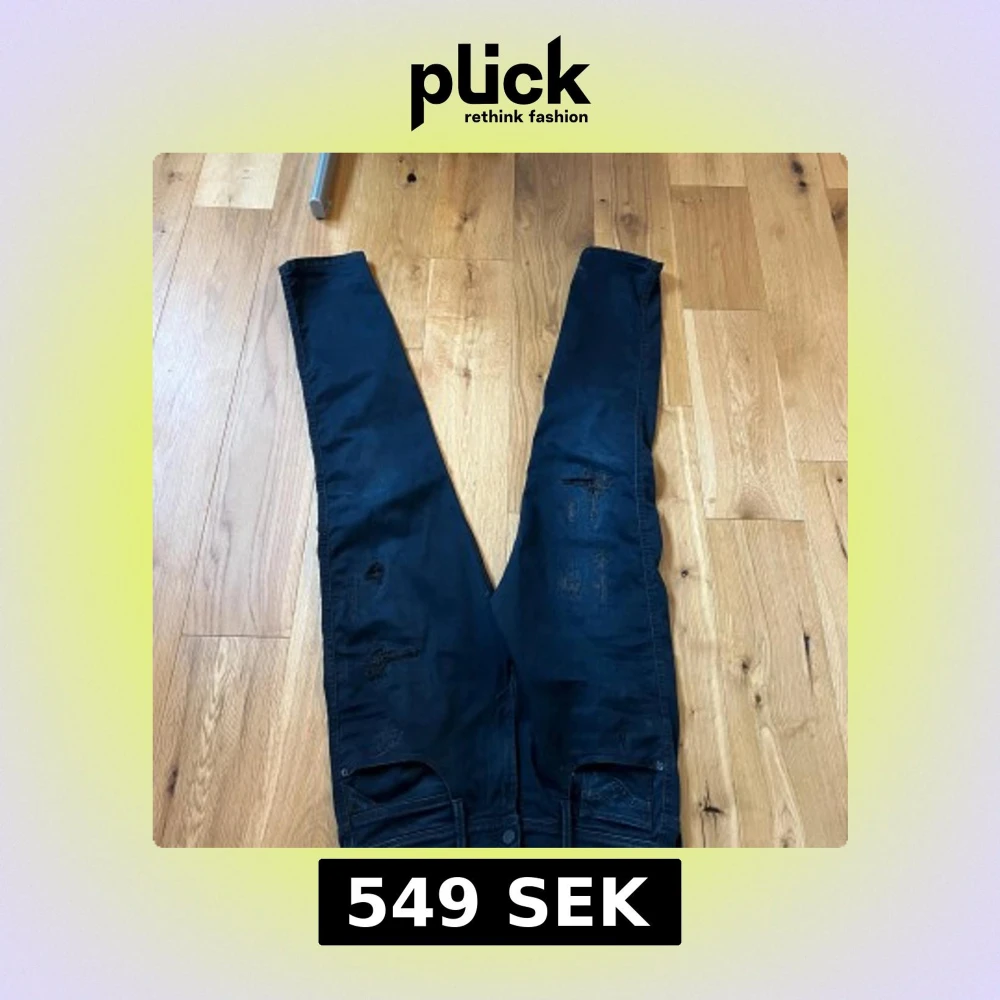 Svarta Replay Anbass jeans i slim fit med slitna detaljer och lagningar på benen. Nästan helt nya!