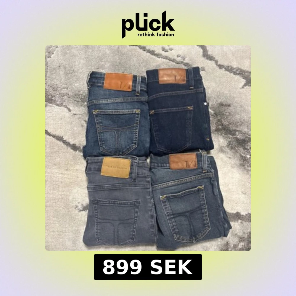 Fyra par jeans från Tiger of Sweden i olika tvättar: grå, mörkblå och två olika blå nyanser. Klassisk femficksmodell med läderpatch bak i midjan och smal passform hela vägen ner. Perfekta för dig som gillar stilrena och slim jeans.