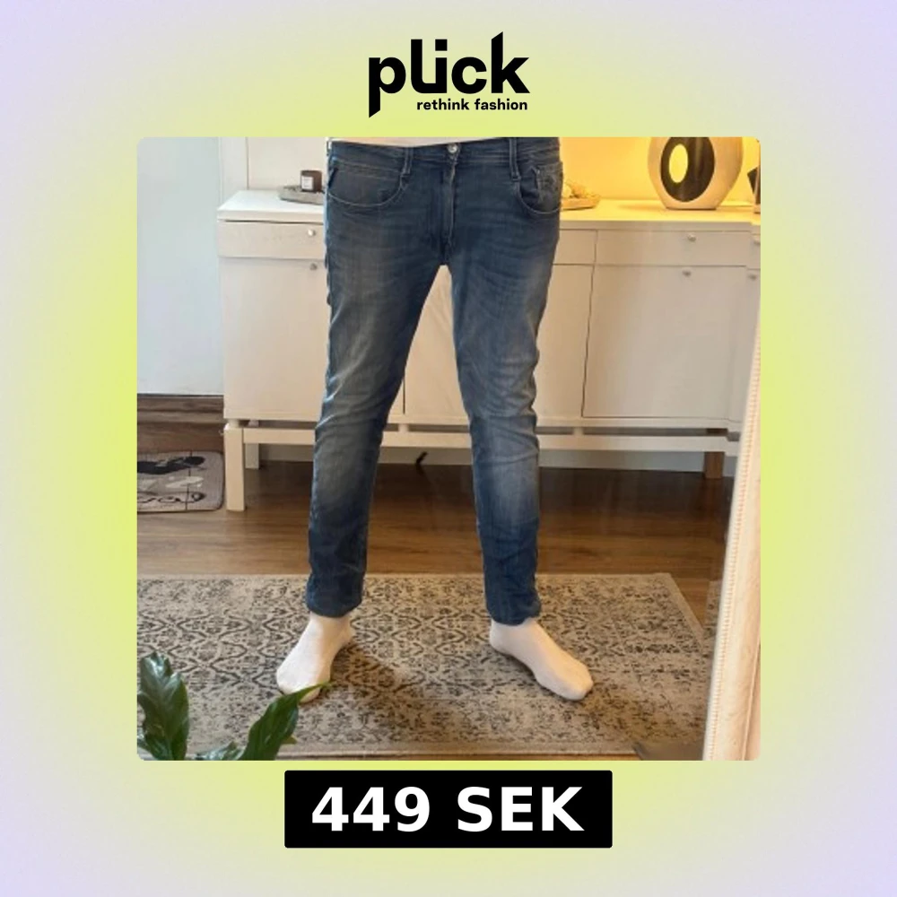 Säljer ett par snygga Replay Anbass jeans i storlek W33 L32. Modellen är cirka 190 81kg Använda men i fint skick, inga fläckar eller hål. Hör av er om ni är några frågor 🙌🏻