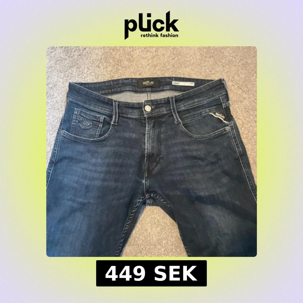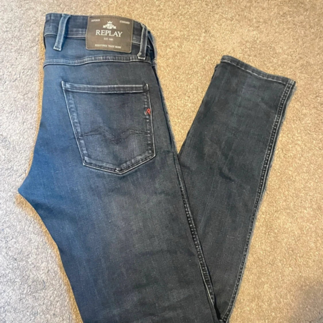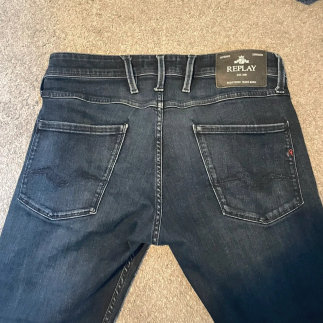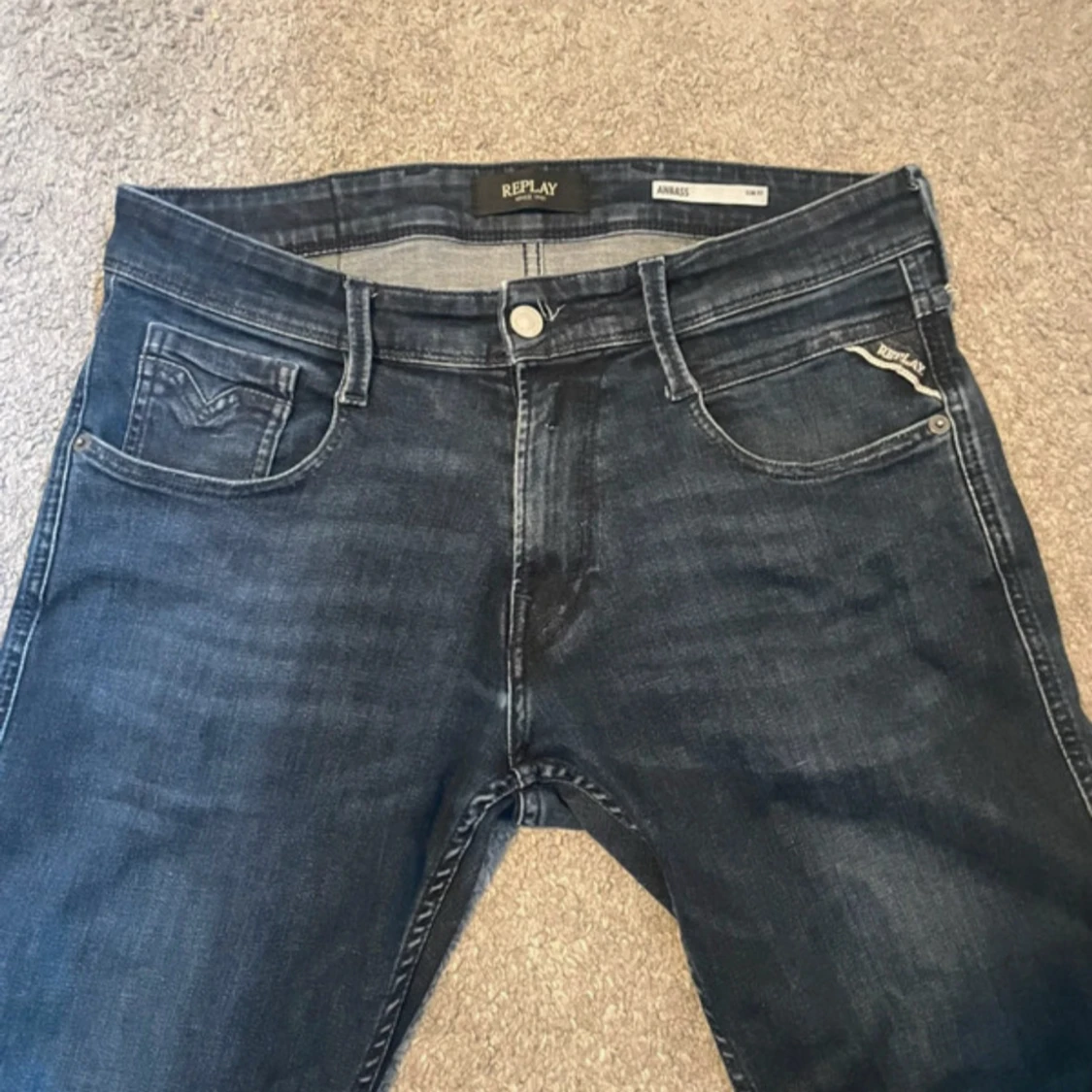 Snygga Replay Anbass jeans i mörkblå tvätt med klassisk femficksdesign och diskreta slitningar. Jeansen har raka ben och normal passform W28 L29