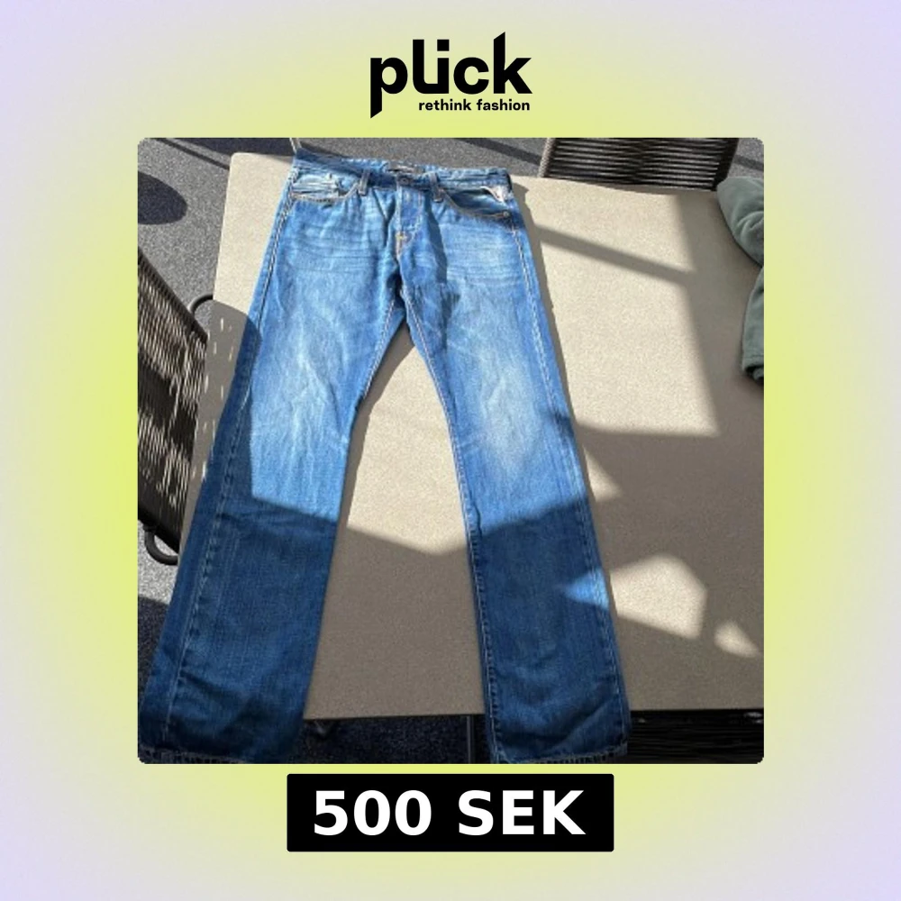 Snygga blå jeans från Replay👖 med klassisk femficksdesign och knappgylf. Perfekta för en avslappnad stil. Märkesdetaljer på baksidan och vid fickan ger en extra touch. Storleken ser ni på sista bilden. Jeansen är använda ett få antal gånger och är som i ny skick. Jag har lagt ut dom för 500 men priset är inte hugget i sten. Hör av er vid minsta fundering ✅