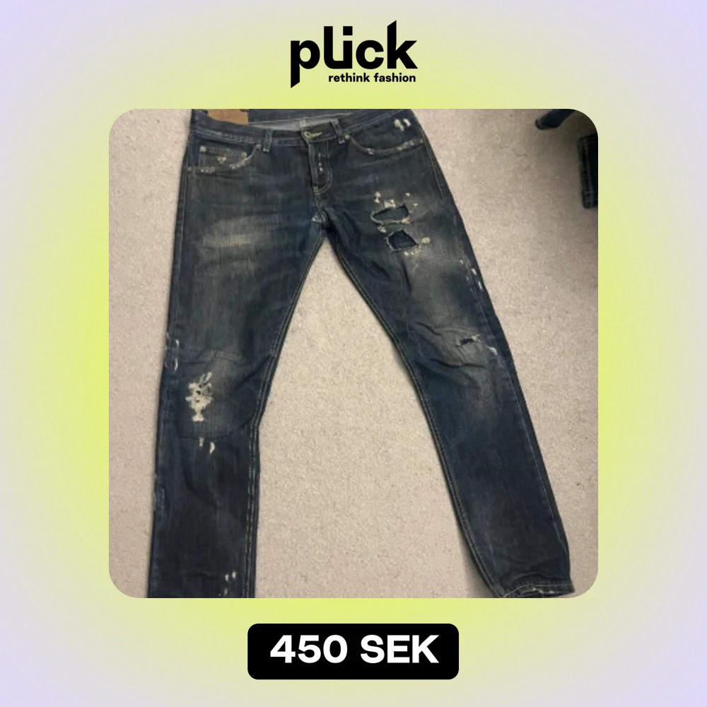 Säljer ett par dondup i modellen Mius (liknande passform som George). Riktigt snygga men har tyvärr fått en del stryk med ett hål i mellangården och andra eftertillkomna slitningar. Syns inte överdrivet vid användning, men bör sy’s. Ge bud!