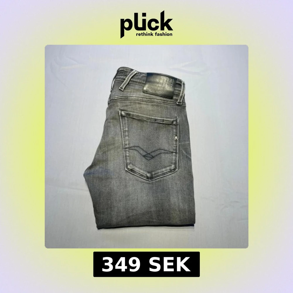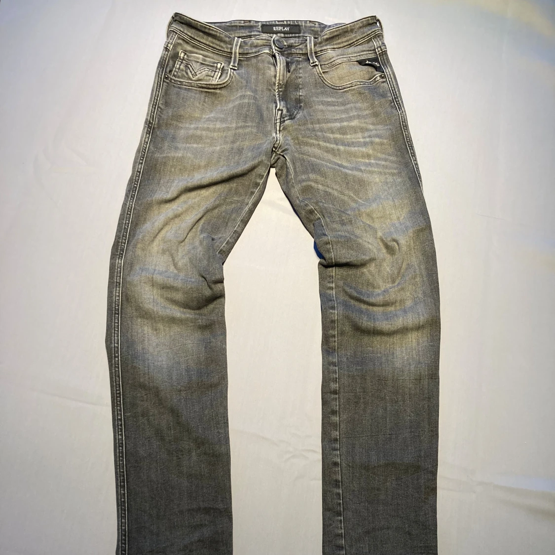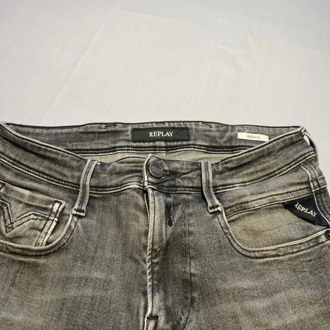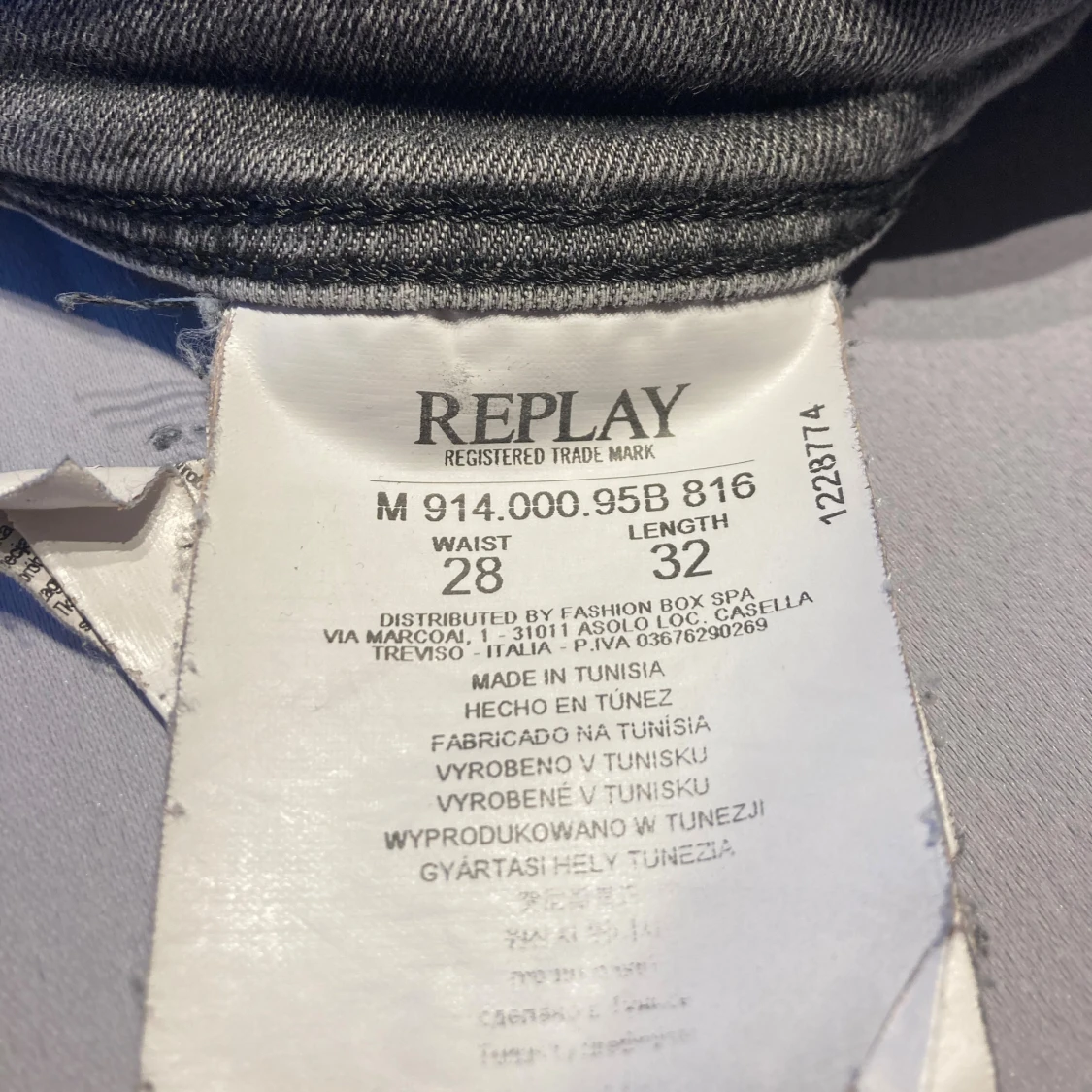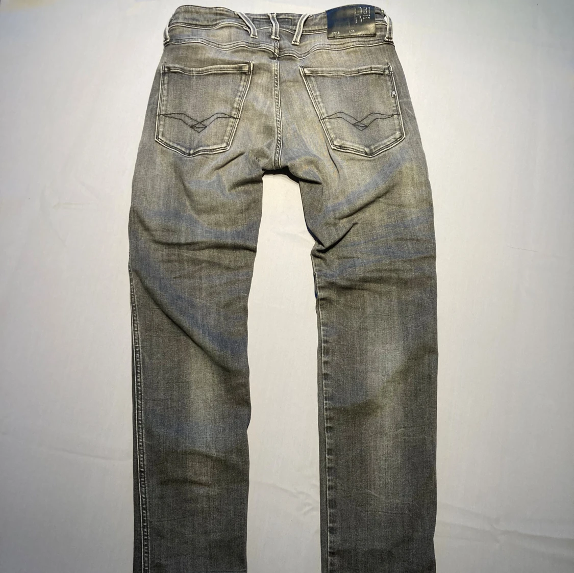 Snygga grå jeans från Replay. Jeansen har raka ben, normal passform och coola detaljer på bakfickorna. Perfekta för dig som gillar en avslappnad men stilren look. Jeansen har en liten slitning i skrevet som man kan se på den andra bilden.