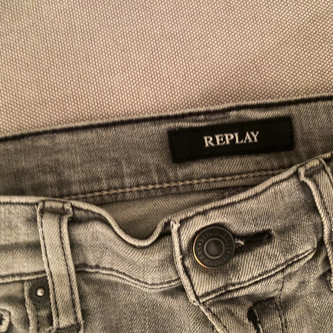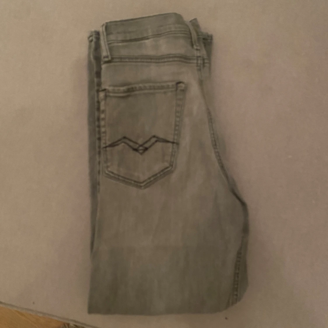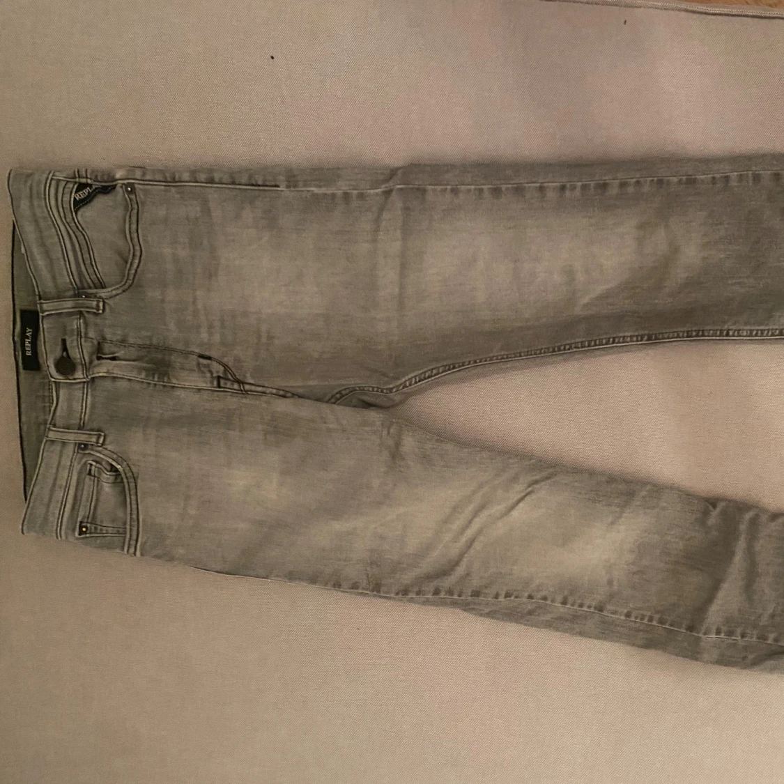 Snygga grå jeans från reaplay. Skicka väldigt bra använda ett fåtal gånger så 8/10. Väldigt moderna och har en slim passform. Passar ungefär på en person som är 165-170