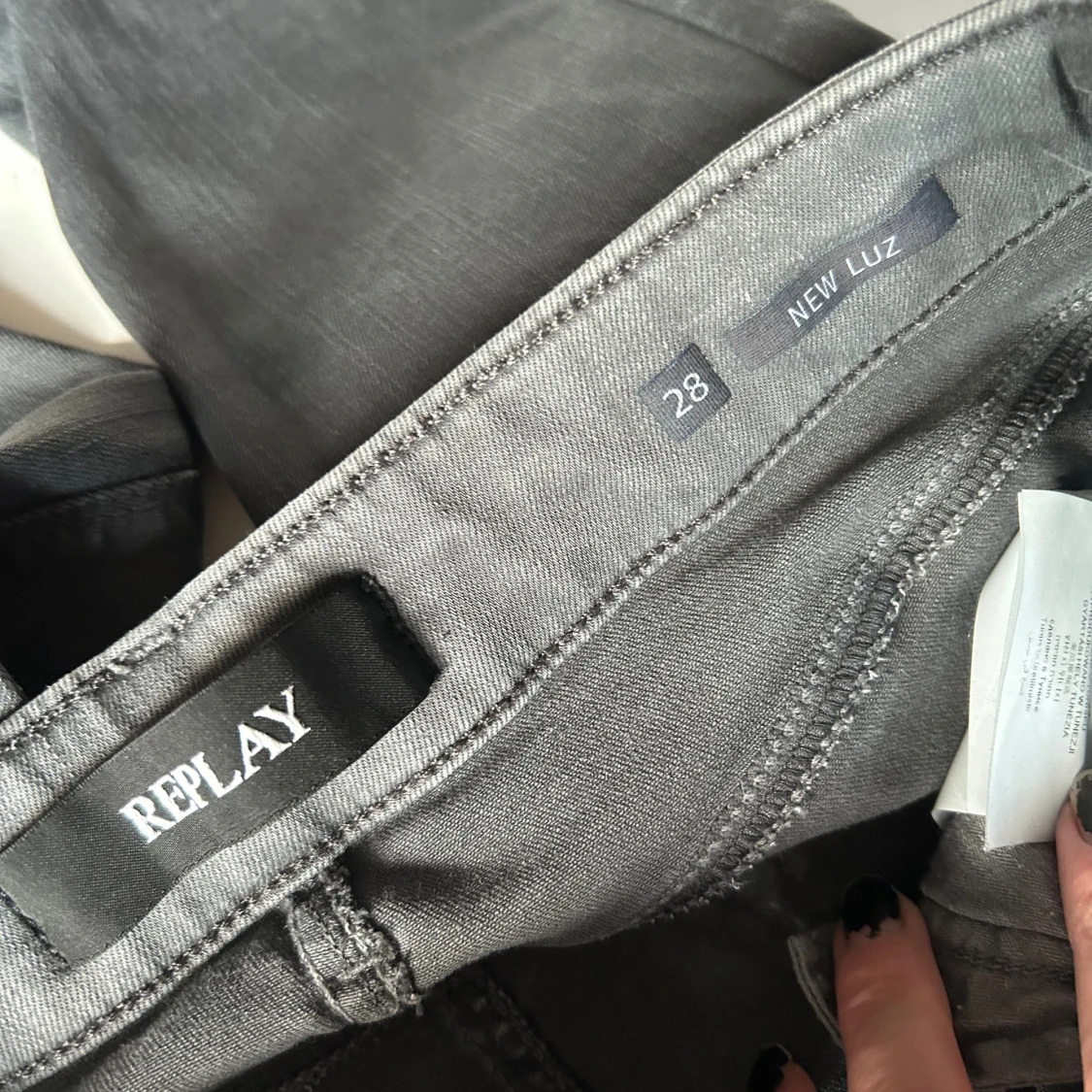 Snygga grå jeans från Replay, modell New Luz. De har en tight passform med klassiska fem fickor och dragkedja. Jeansen är i stretchigt material som sitter skönt och följer kroppen. Perfekta för dig som gillar en stilren och modern look.