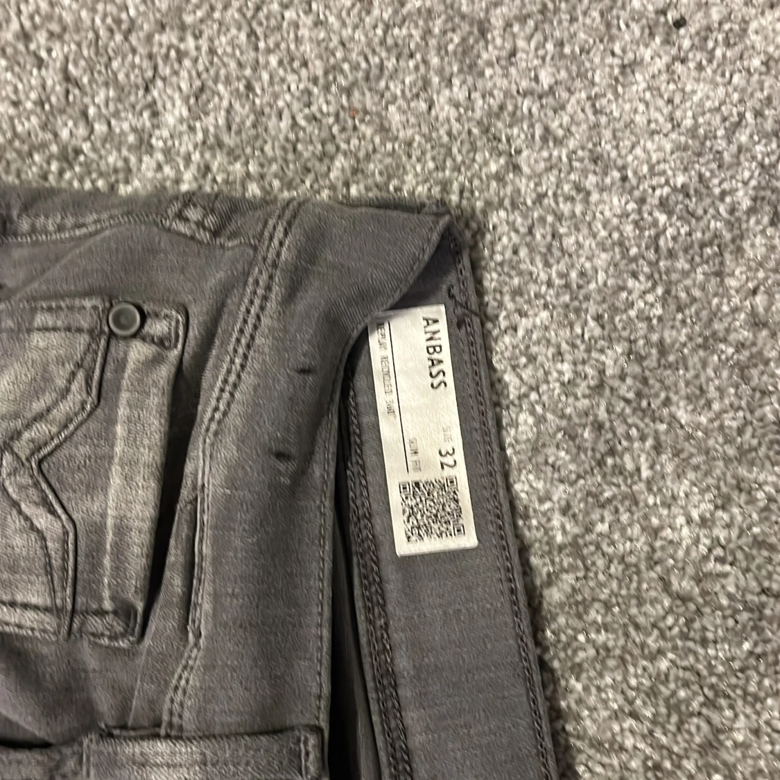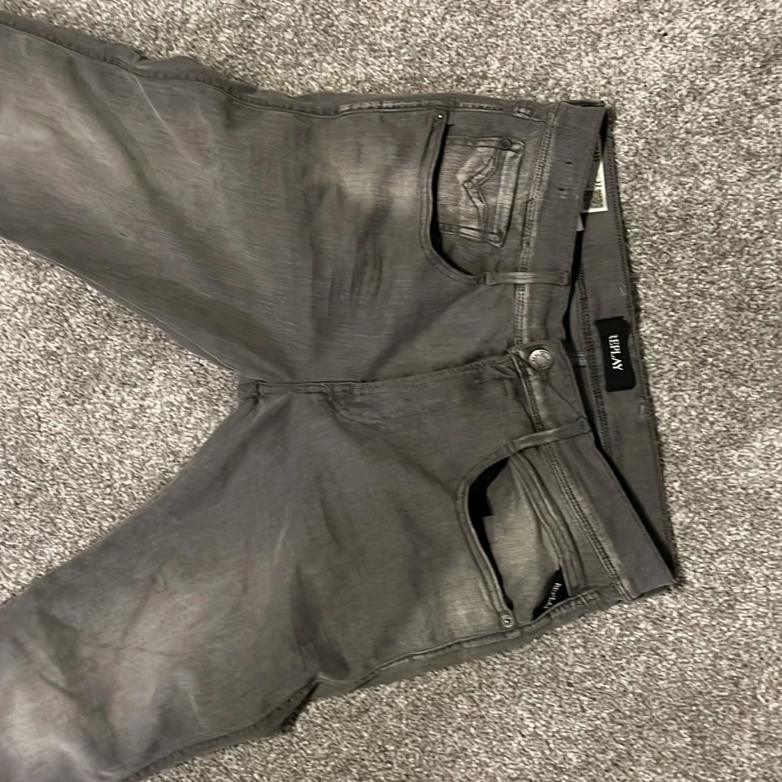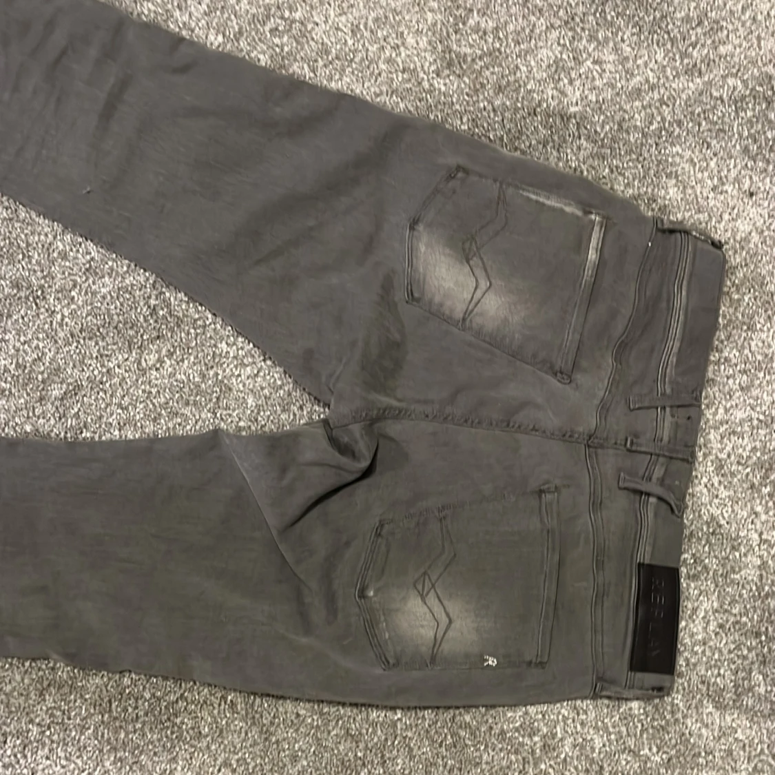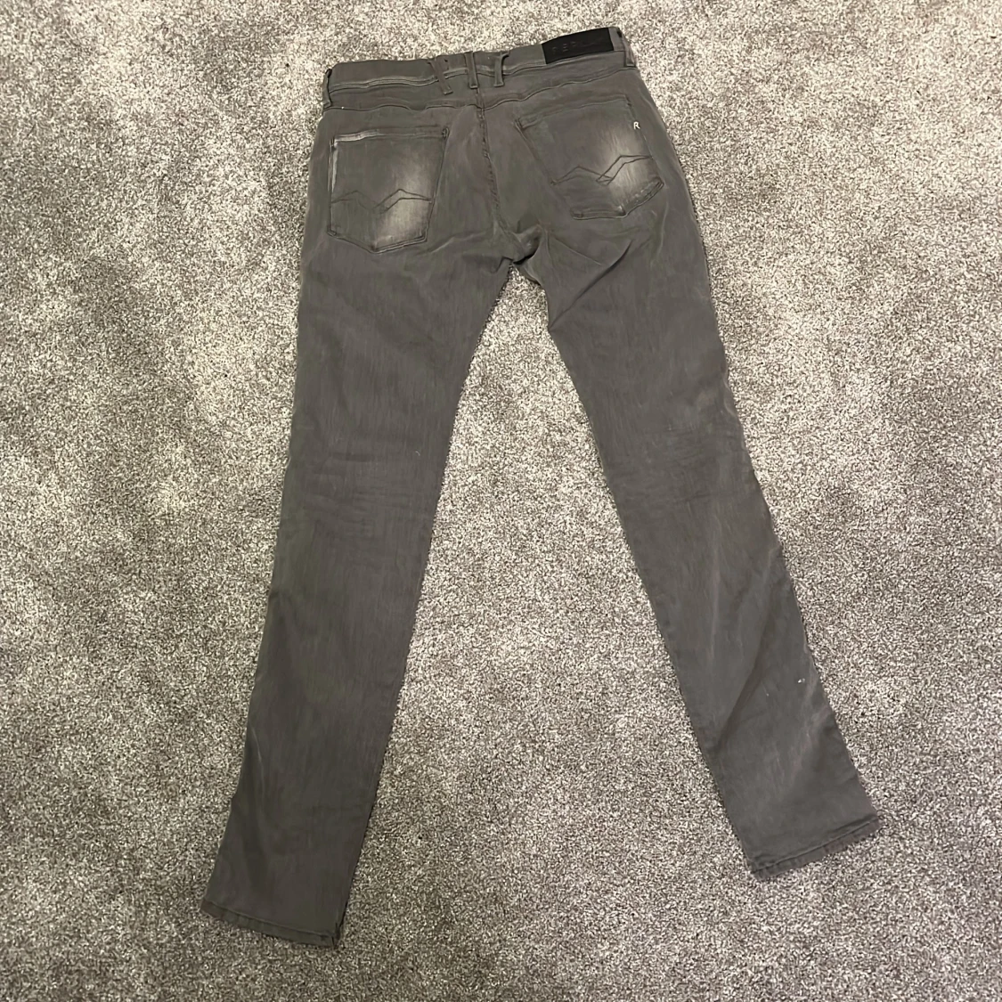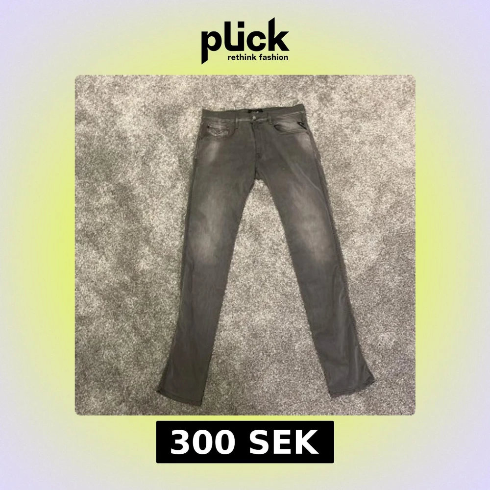 Snygga grå jeans från Replay med slim passform och klassisk femficksdesign. Jeansen har diskreta slitningar och Replay-logga på bakfickan. Materialet är mjukt och stretchigt för extra komfort. Perfekt för dig som gillar stilrena och moderna jeans.