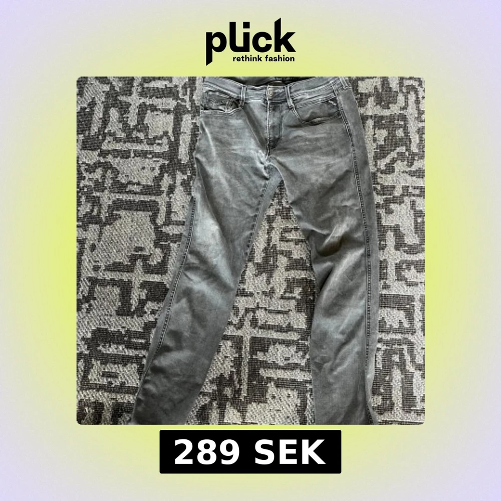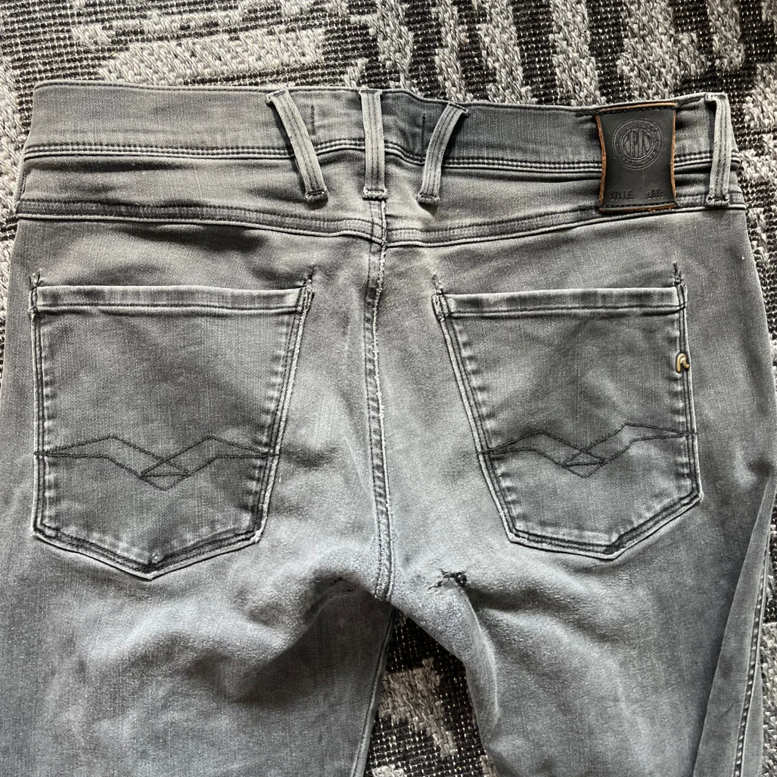 Snygga Replay Anbass jeans i grå tvätt med klassisk femficksdesign och Replay-logga på fickan. Slim fit.