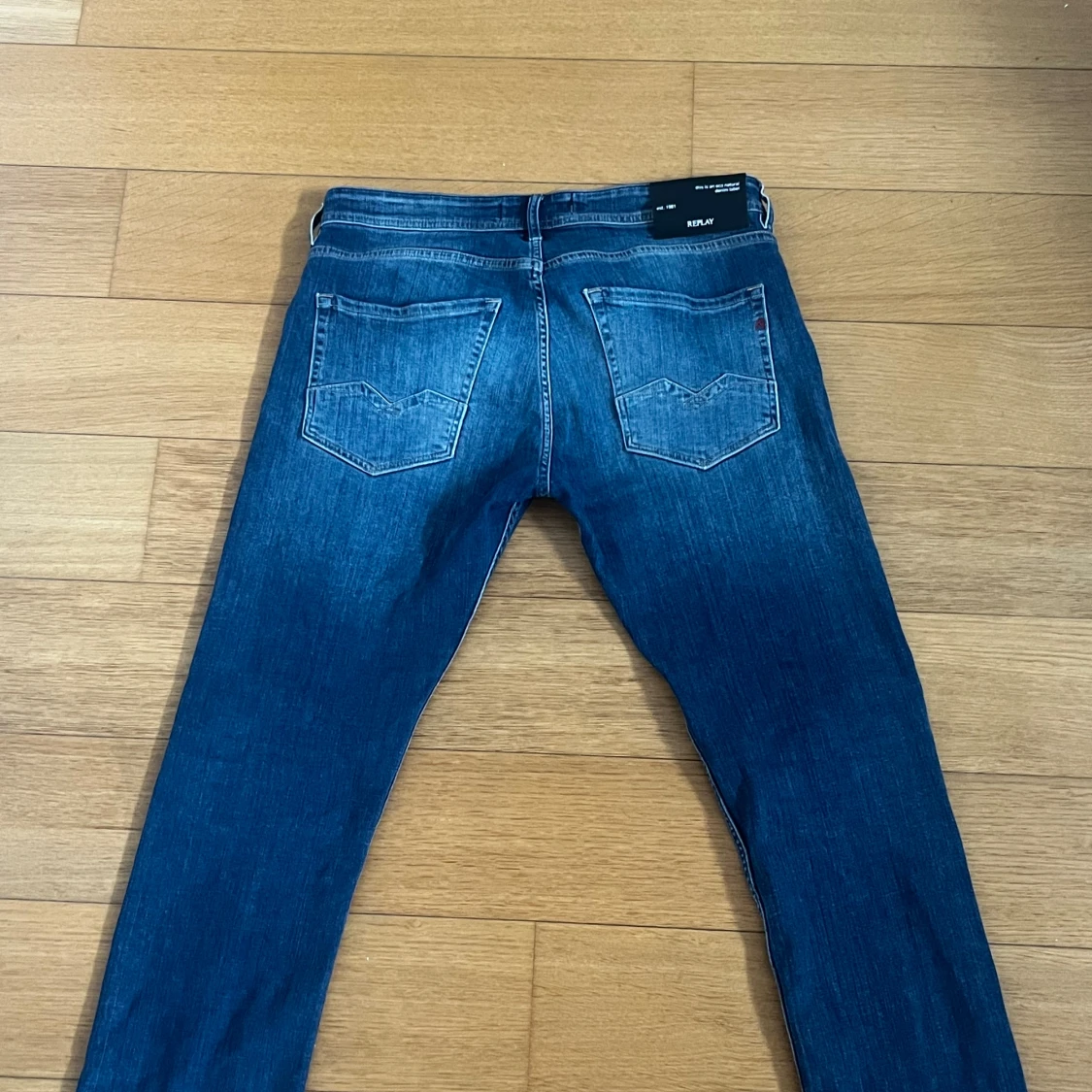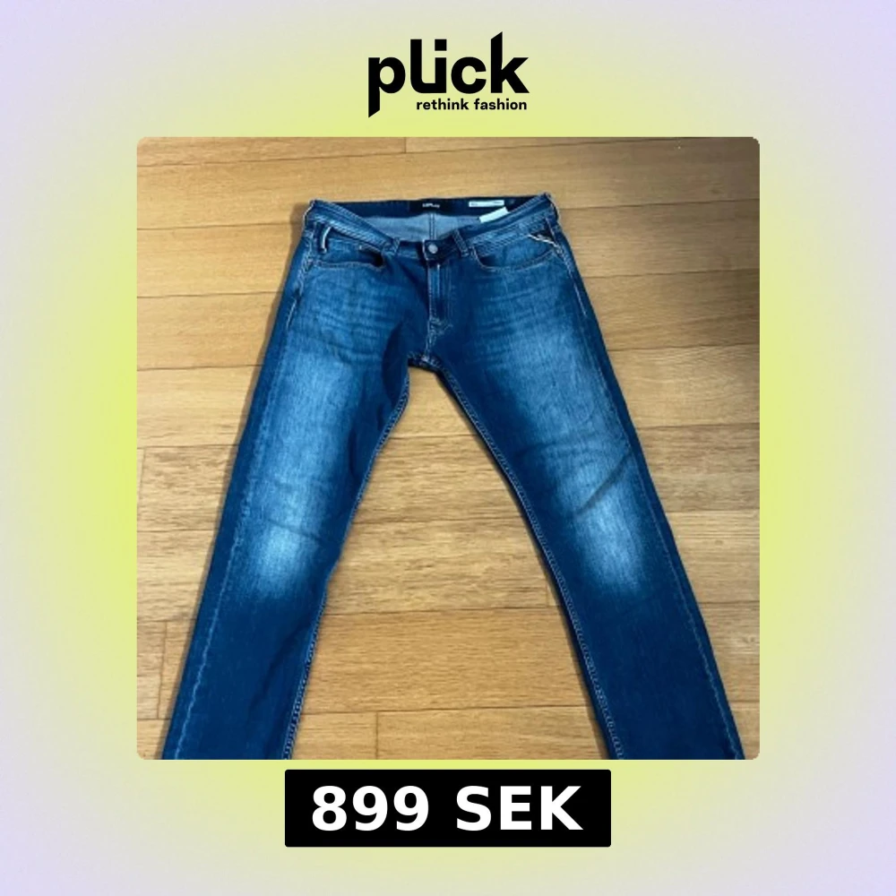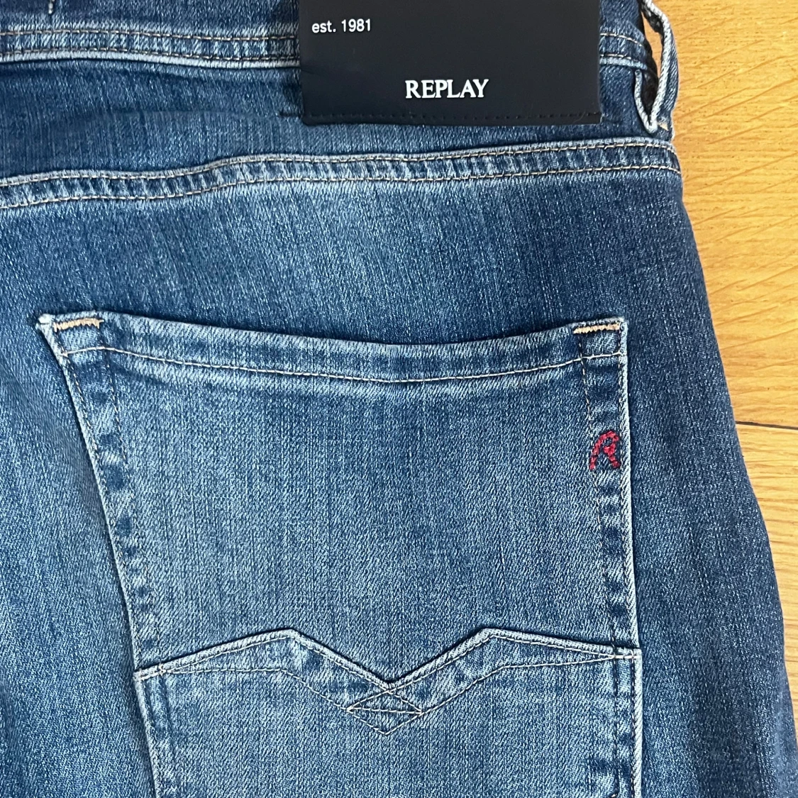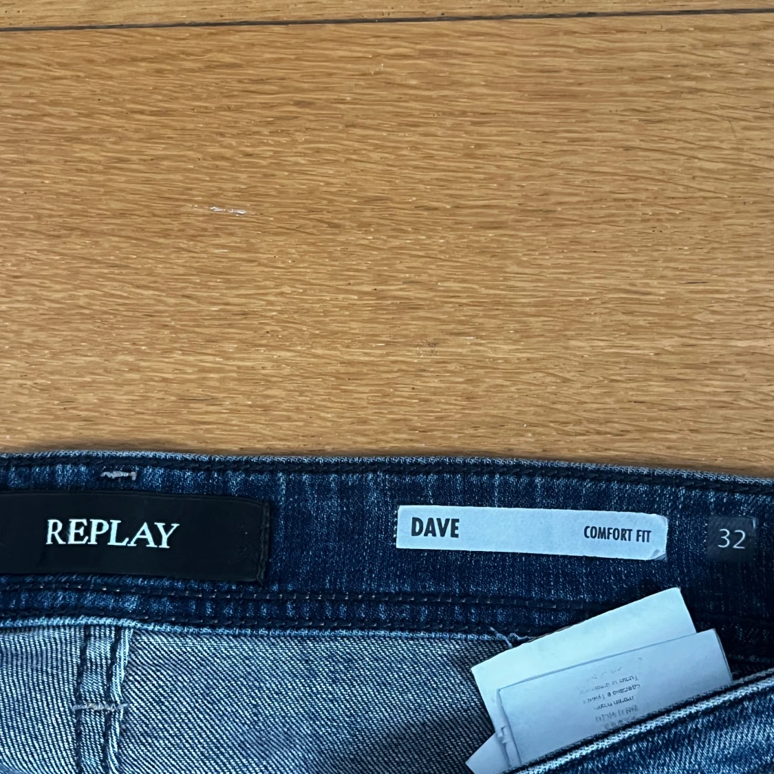 Säljer ett par blå Replay Dave jeans i comfort fit med klassisk femficksdesign. Jeansen har raka ben och längden är 34. Perfekta för dig som gillar en avslappnad men stilren look. Köpta för 1499 nypris.