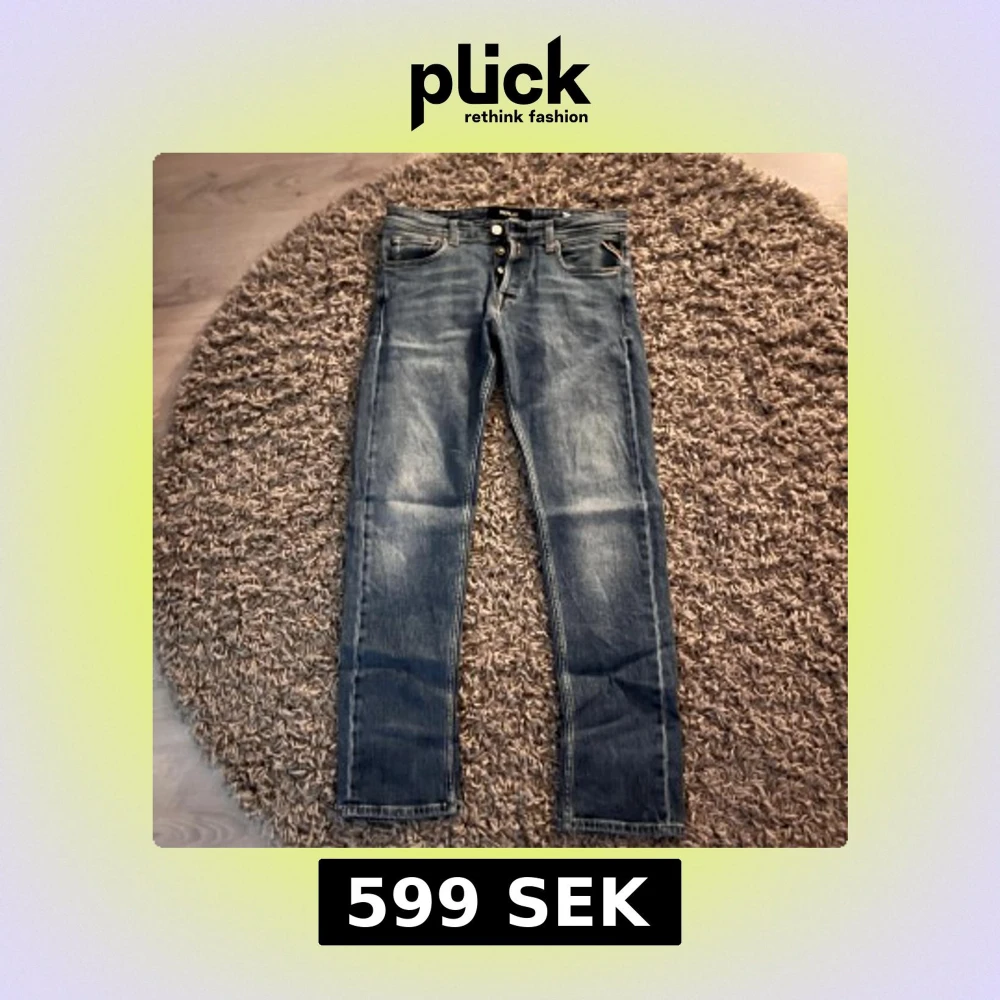 Säljer ett par Replay Grover jeans i klassisk blå tvätt med snygg slitningar, storlek 28 men känns som 29! Ny pris ligger på ca 1200kr och jag säljer dessa för 599!!!, Priset är ej hugget i sten