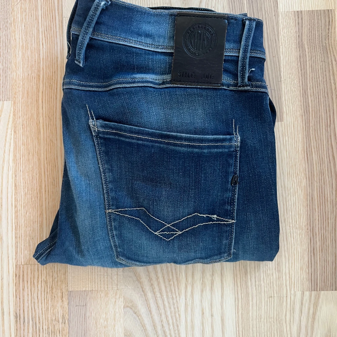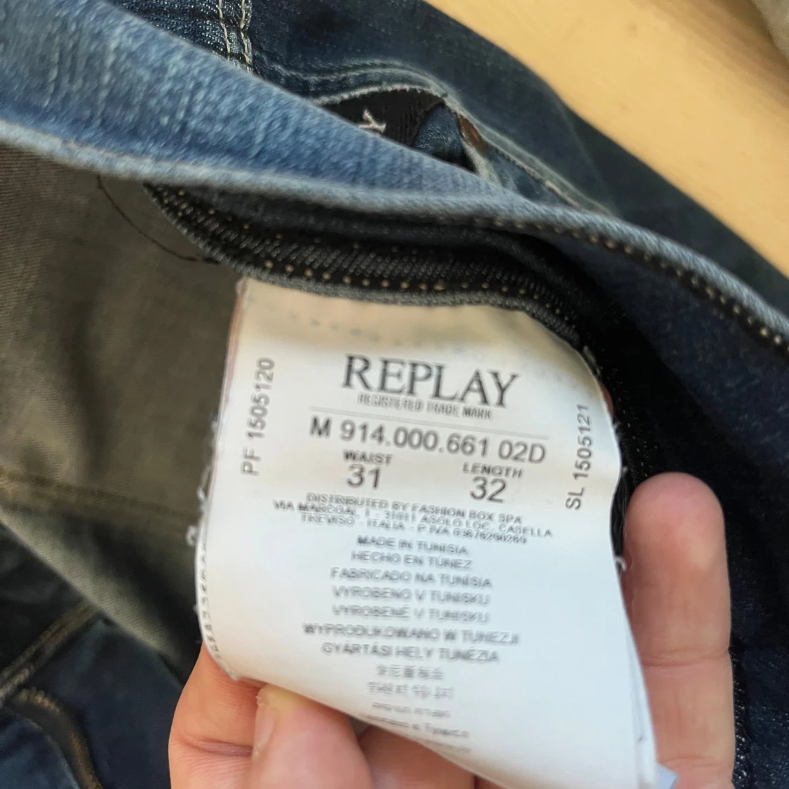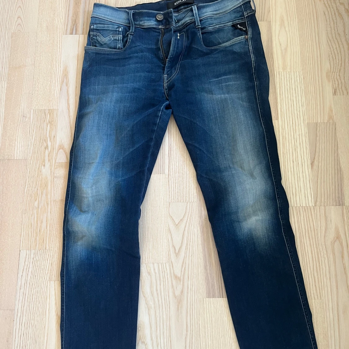 Snygga blå jeans från Replay med en klassisk femficksdesign och en cool tvättad look. De har en knappgylf och är perfekta för en avslappnad stil. Midjan är W31 och längden L32.