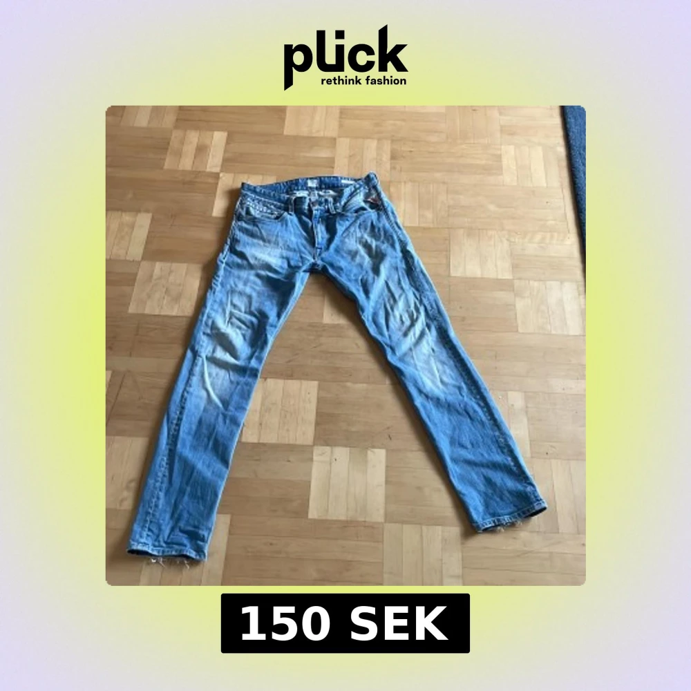 Säljer ett par klassiska blå jeans från Replay, modell Jeto. Byxorna har raka ben, med tydliga slitningar