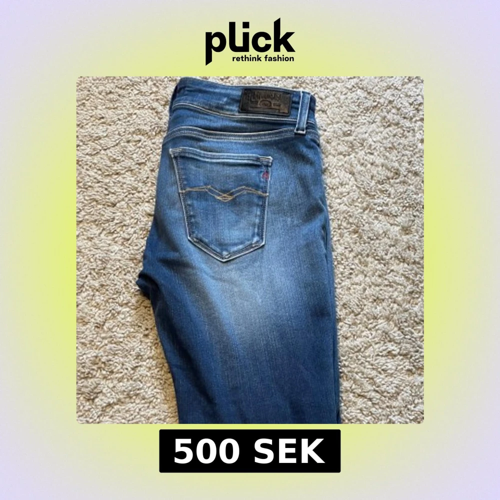 Säljer nu dessa tvärfeta blåa Replay jeans med slitningar och slim/skinny fit. Storleken är W29 och L30 men är thigta vid låren. Detta ser du på bild fem och modellen där är 167 cm lång. Hör av er vid minsta fundering!😁