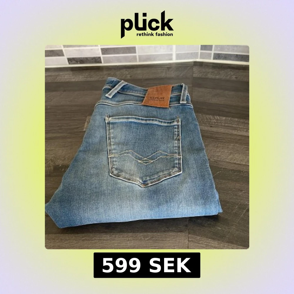Säljer ett par Replay Hyperflex jeans i ljusblå med några feta slitningar, hör bara av dig ifall du har några frågor🤩, Nypris 1300kr