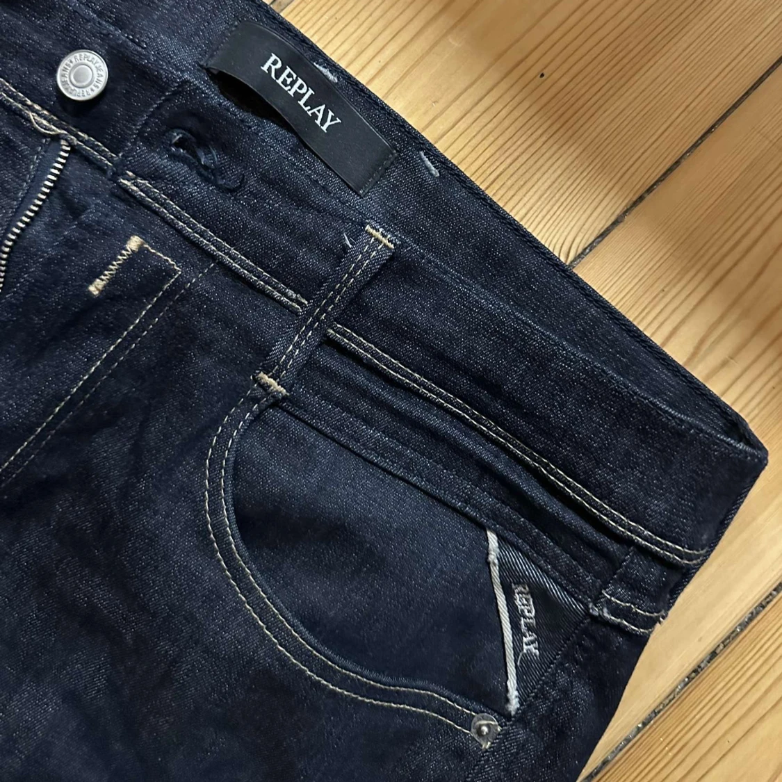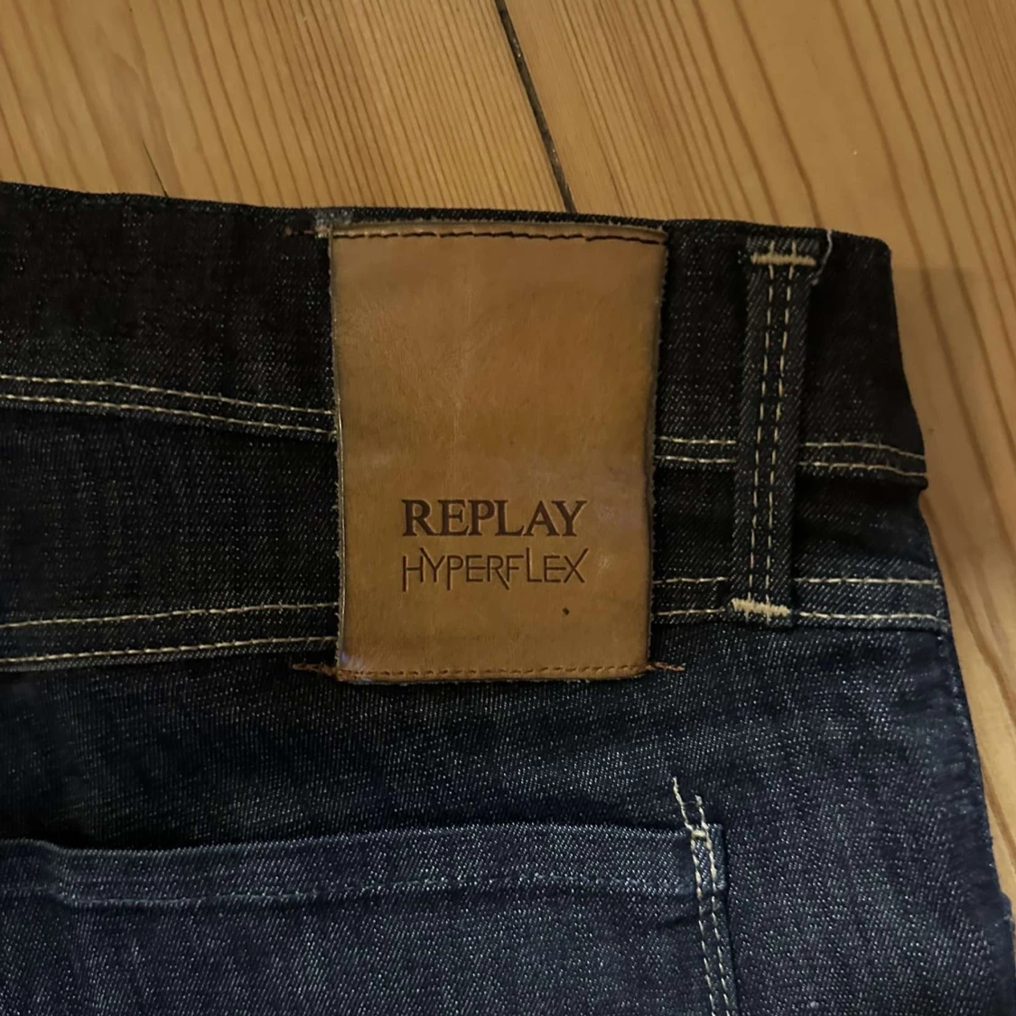 Replay Hyperflex jeans i mörkblå färg med klassisk femficksdesign och kontrastsömmar. Stretchigt material. Waist 32, length 30