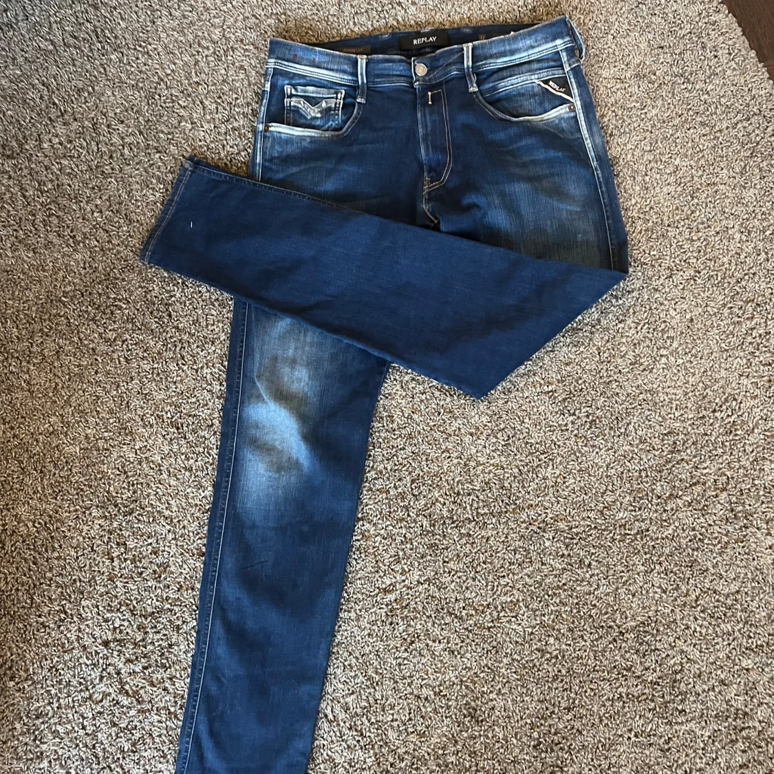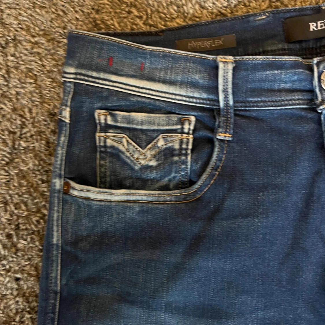 Snygga Replay Hyperflex jeans i mörkblå tvätt med slitningar och kontrastsömmar. Modellen är skinny fit med klassiska fem fickor och stretchigt jeanstyg för extra komfort. Perfekta för dig som gillar en smal siluett och vill ha jeans som sitter tajt hela vägen.