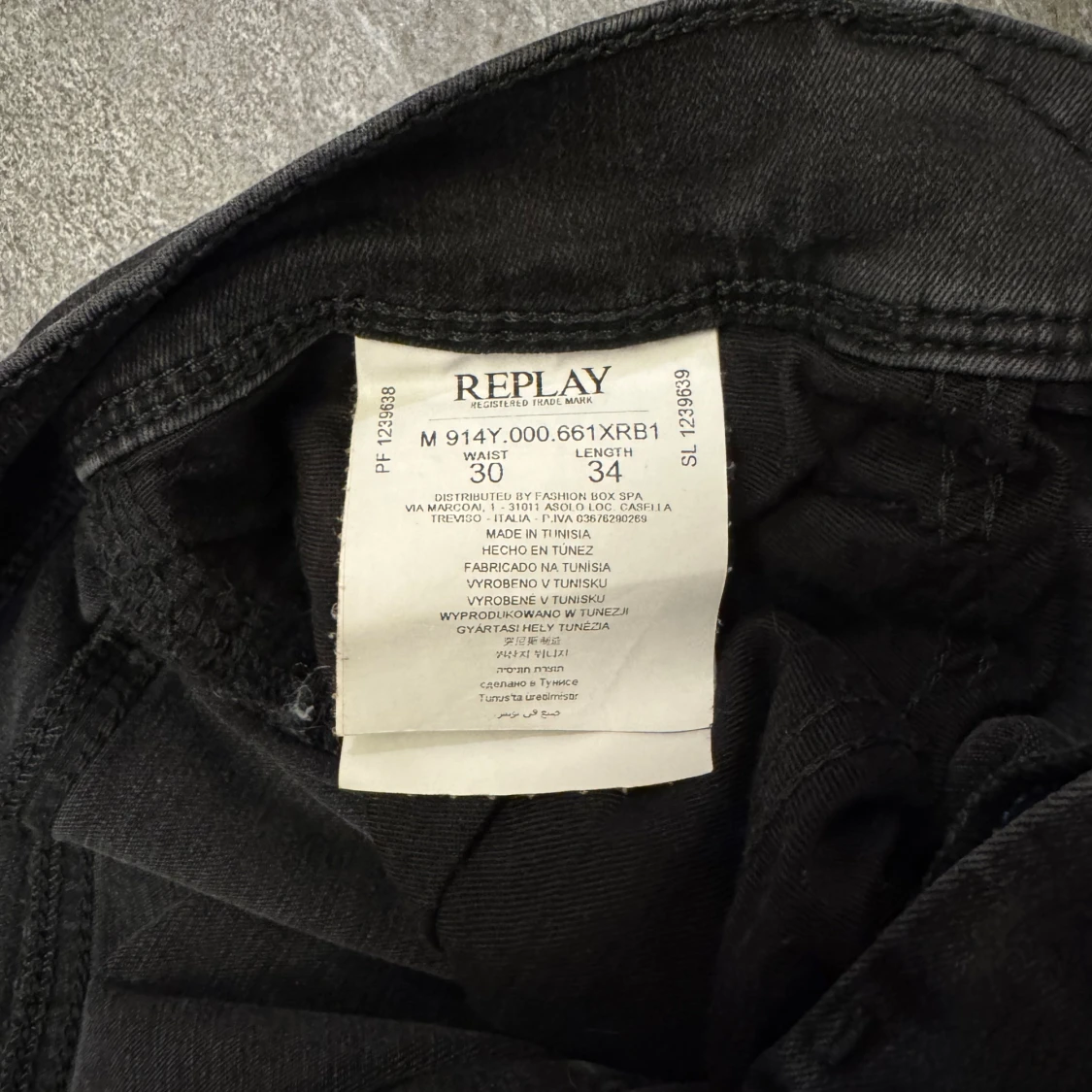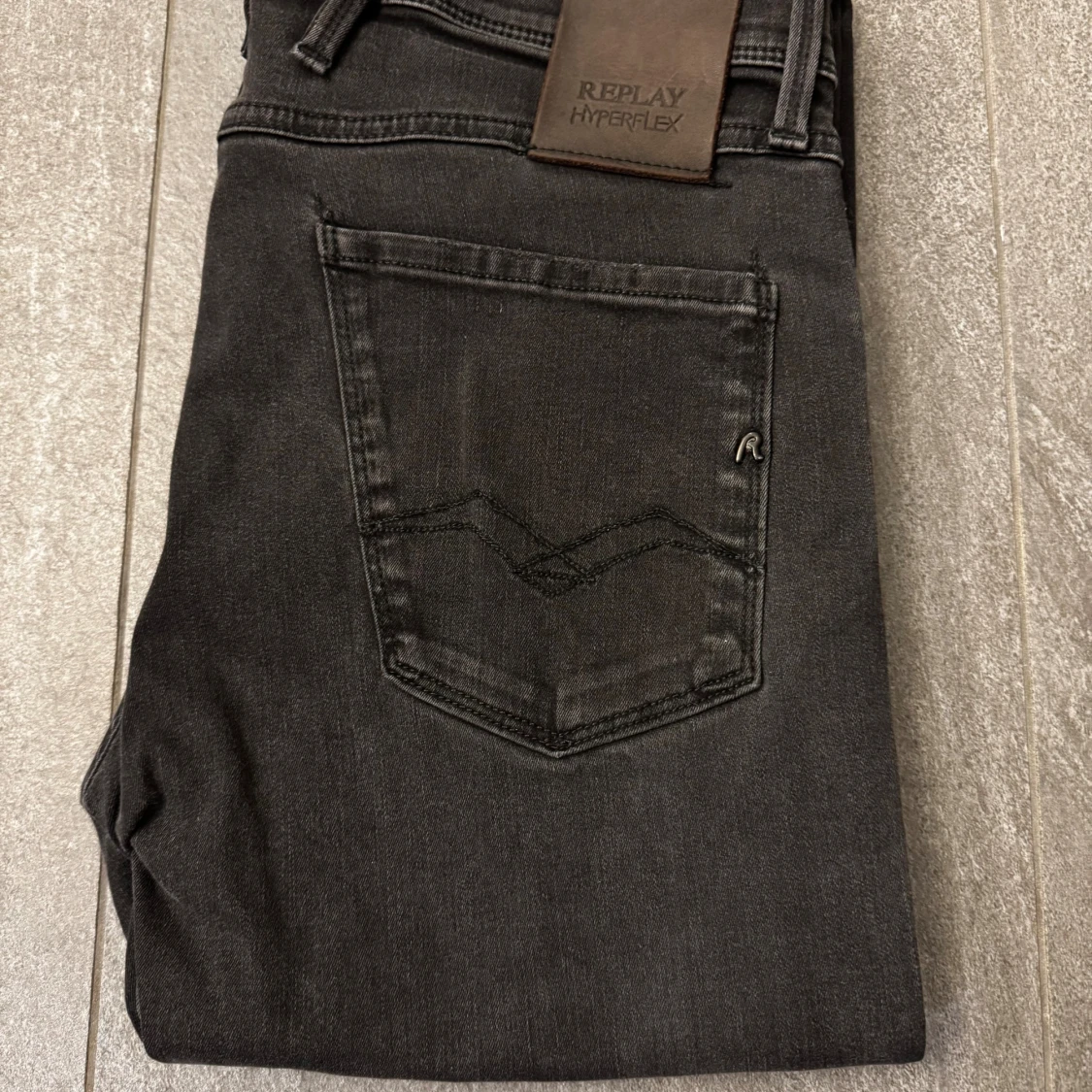 Säljer ett par svarta Replay Hyperflex jeans. Jeansen har klassisk femficksdesign, svarta sömmar och en snygg Replay-lapp bak i midjan. Stretchigt material som sitter tajt och bekvämt hela dagen. Storleken är 30/34