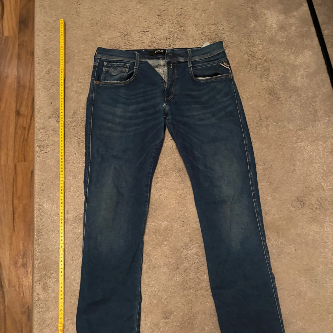 Säljer mina Replay-jeans! Har legat i garderoben ett tag, så dags att de får ett nytt hem 👖 Skicket är bra – bara en liten, knappt synlig defekt (se bild 3). Perfekta vardagsjeans med grym passform! 🩶 Midjemått: 43 cm 🩶 Längd: 105 cm Vill mest bli av med dem, så ni får dem för en liten peng 😉