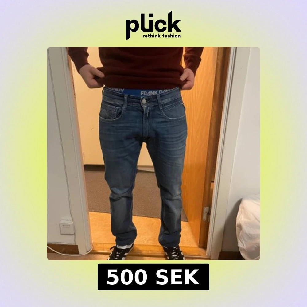 Snygga blå jeans från Replay i modellen Rocco. W31 L34. Passar även bra W32. Mycket bra skick endast använda 1-2 gånger Midja 40cm, benlängd till midjan 105cm