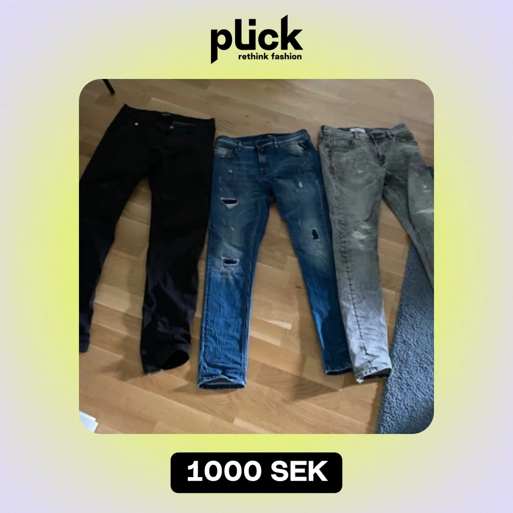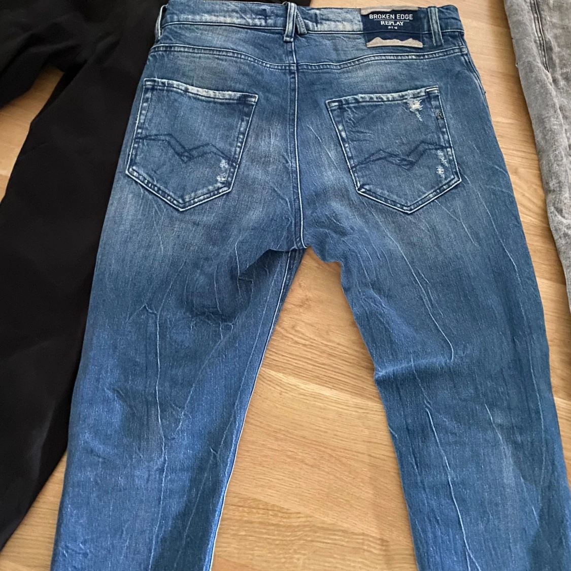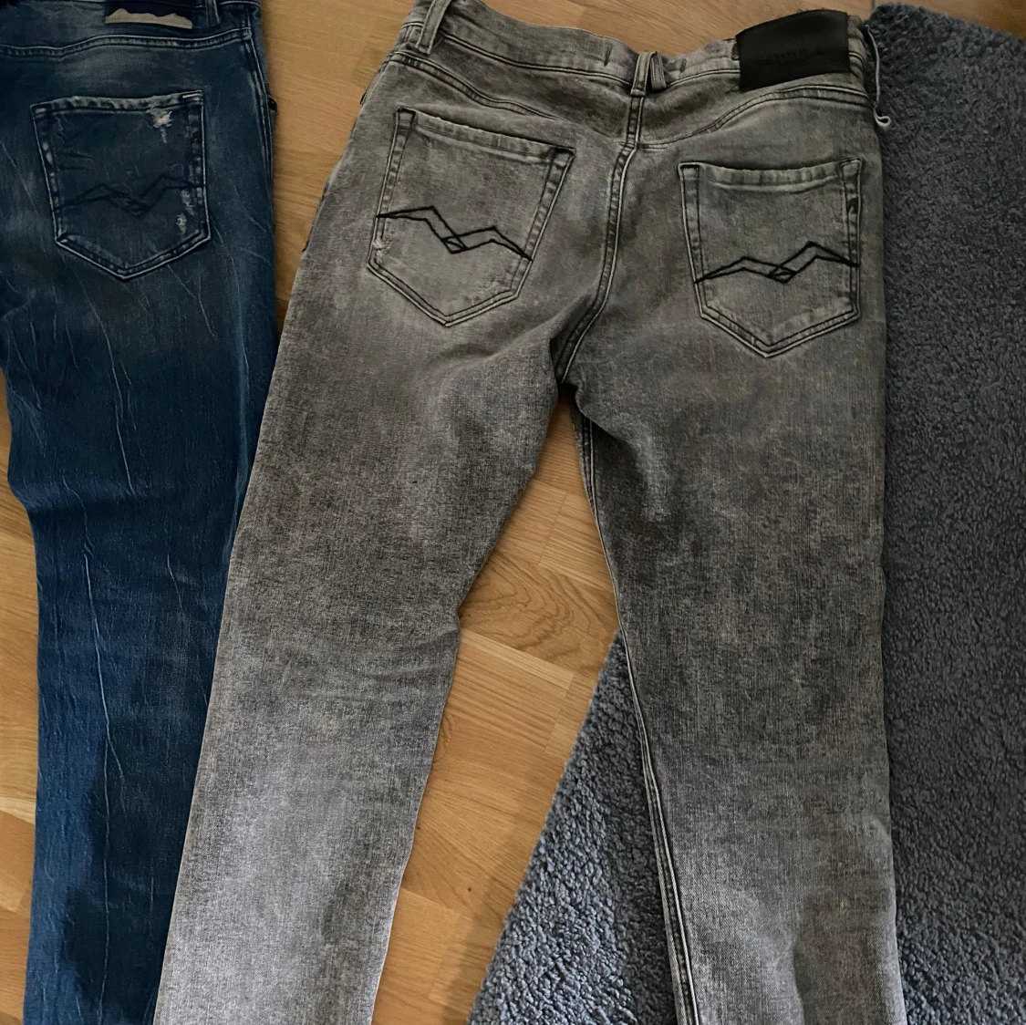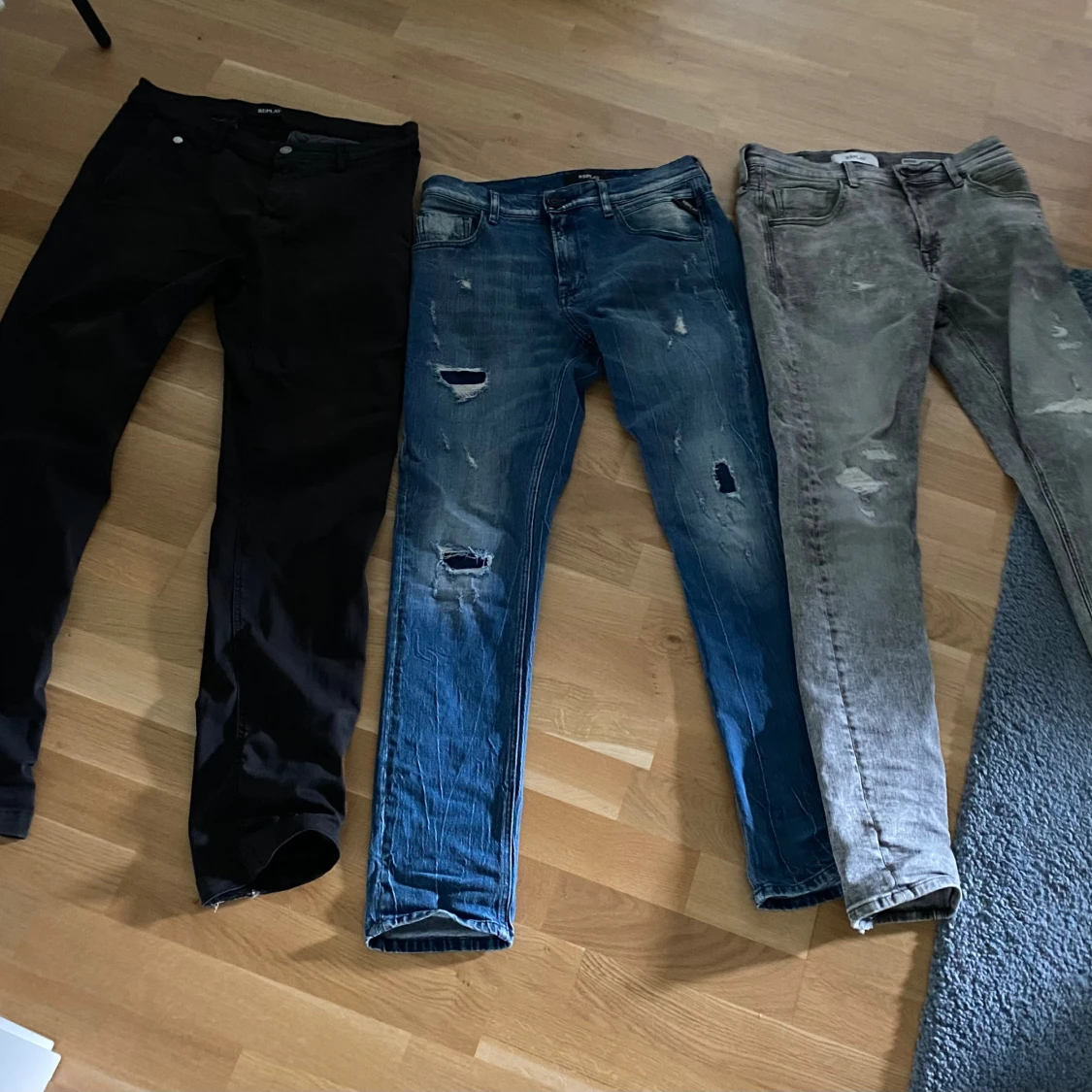 Hej! Säljer mina 3 replay jeans då jag har växt ur dom. Dem blåa och gråa är slim fit storlek 29 waist, 32 lenght. Dem svarta är straight fit 32,32. Jeansen är i gott skick, inga revor eller hål. (Paket med alla 3 för 1000kr)