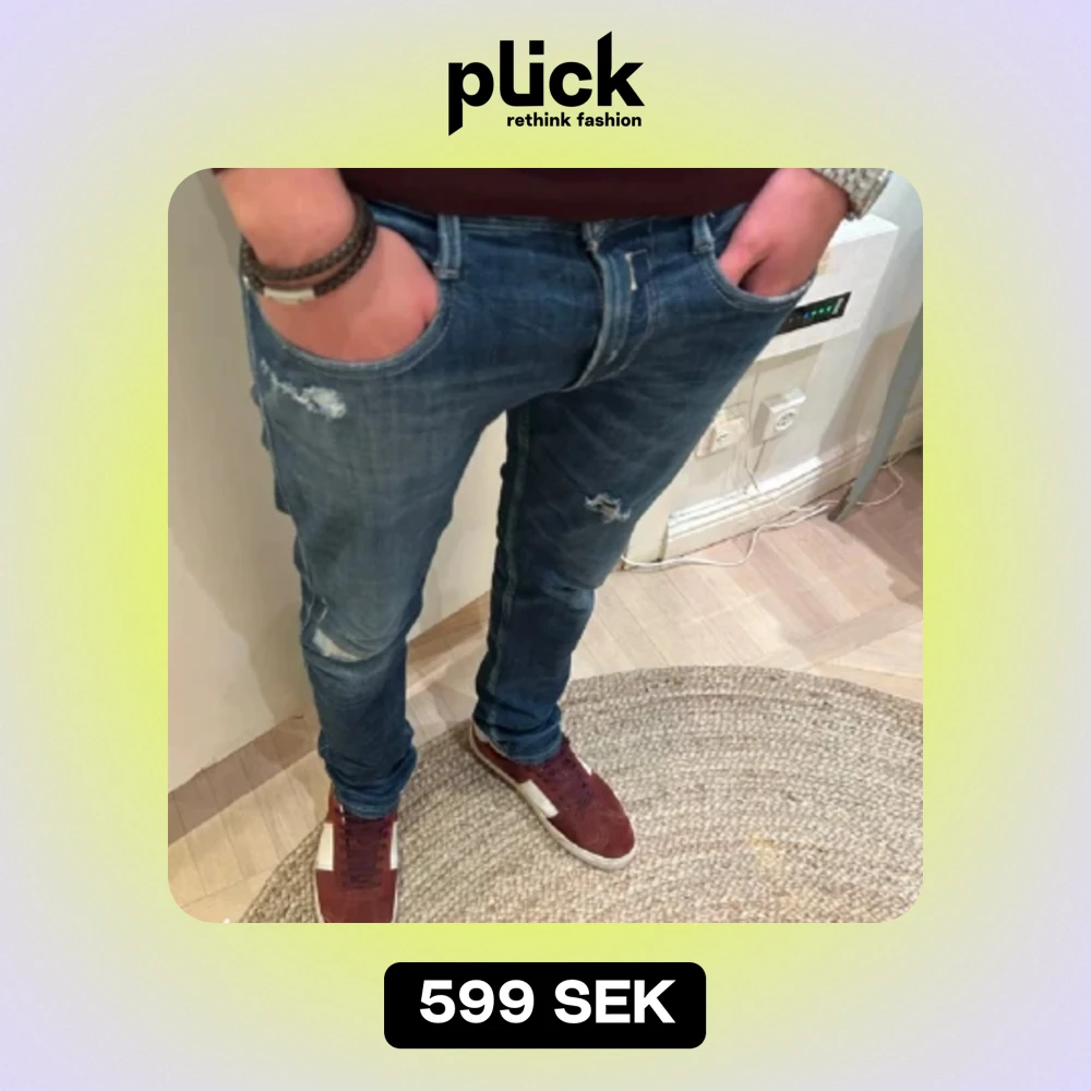 Väldigt snygga o populära replay anbass hyperflex me snygga slitningar. Står storlek 33/34 men sitter lite tajtare. Mer som 32/32! Men går såklart också för folk över den storleken då dessa är sjukt flexibla. Modellen är ca 185 och väger 70kg