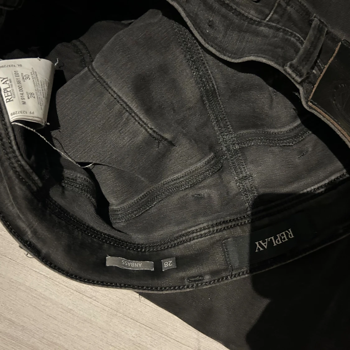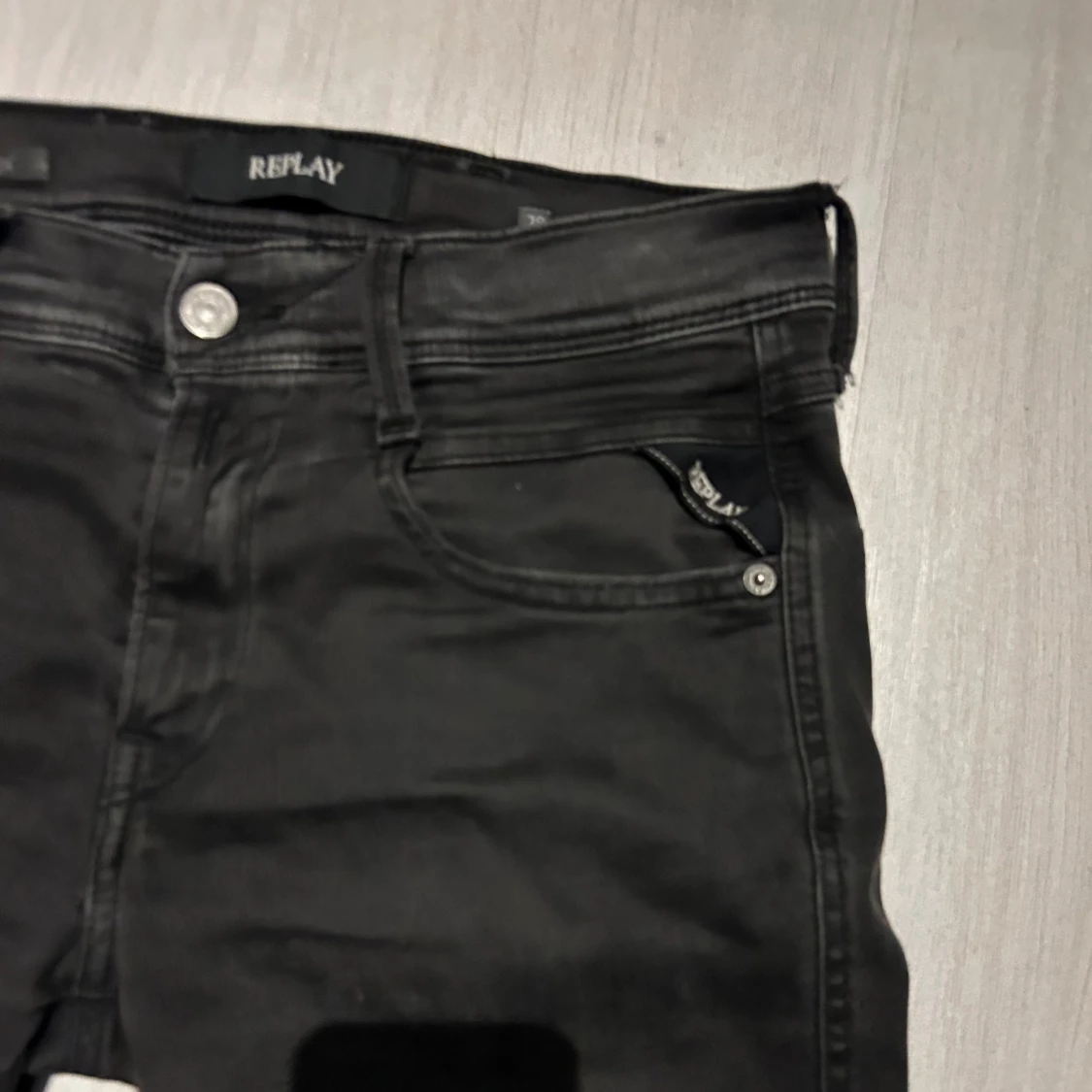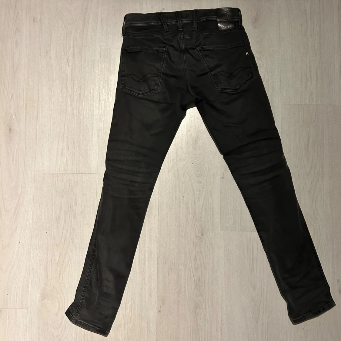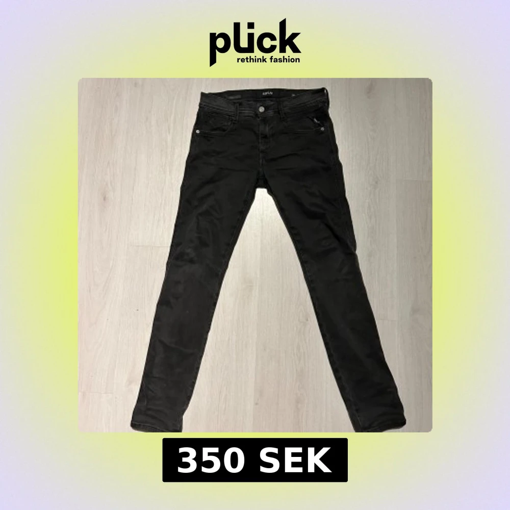 Svarta jeans från Replay med modellen anbass (slim passform) och klassisk femficksdesign. Snygga detaljer med Replay-logga på fickan och bak på linningen. Jeansen har dragkedja och knapp framtill och är tillverkade i stretchigt jeansmaterial för en bekväm känsla. Storlek w28 l30 hör gärna av er med prisförslag eller om ni vill ha fler bilder eller mått!