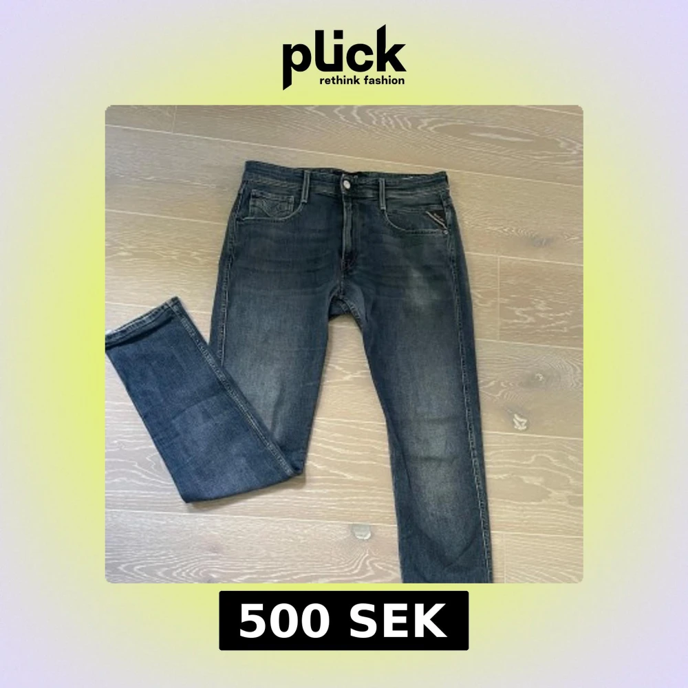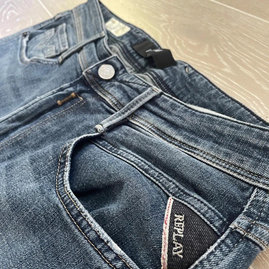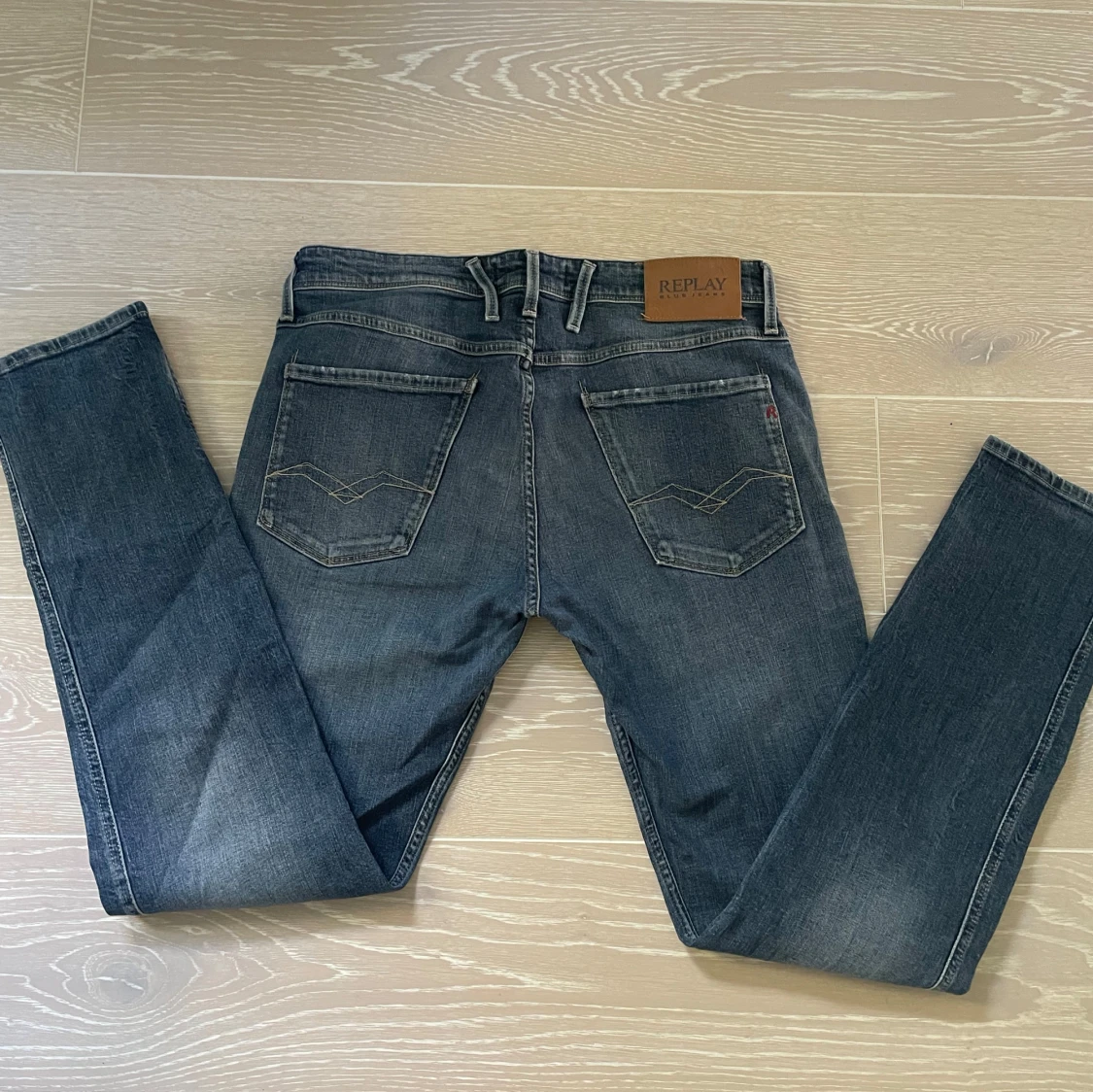 Snygga Replay jeans i mörkblå tvätt med klassisk femficksdesign och diskreta slitningar. Byxorna har raka ben, normal passform och detaljerad söm på bakfickorna. Märkespatch i läder baktill och dragkedjegylf. Perfekta för en stilren vardagslook. Jeansen passar till allt och är riktigt snygga, killen på bilden är ungefär 180cm lång och sitter perfekt på han, skicket är som nytt alltså perfekt och har använts ungefär 3 gånger, storleken är W32 L32, priset ej hugget i sten, hör av dig vid frågor!🤩