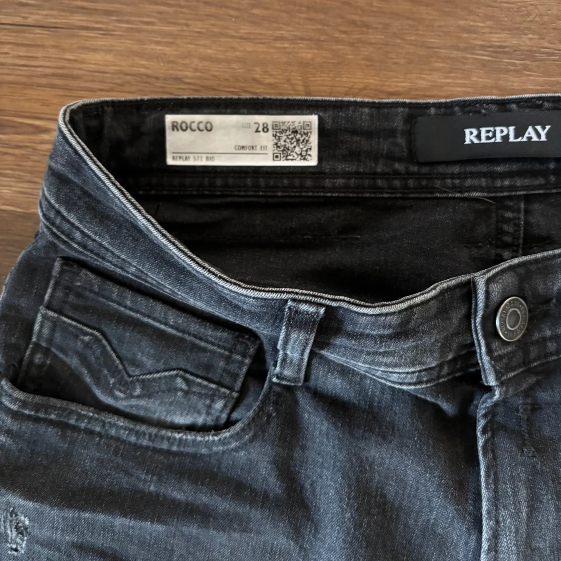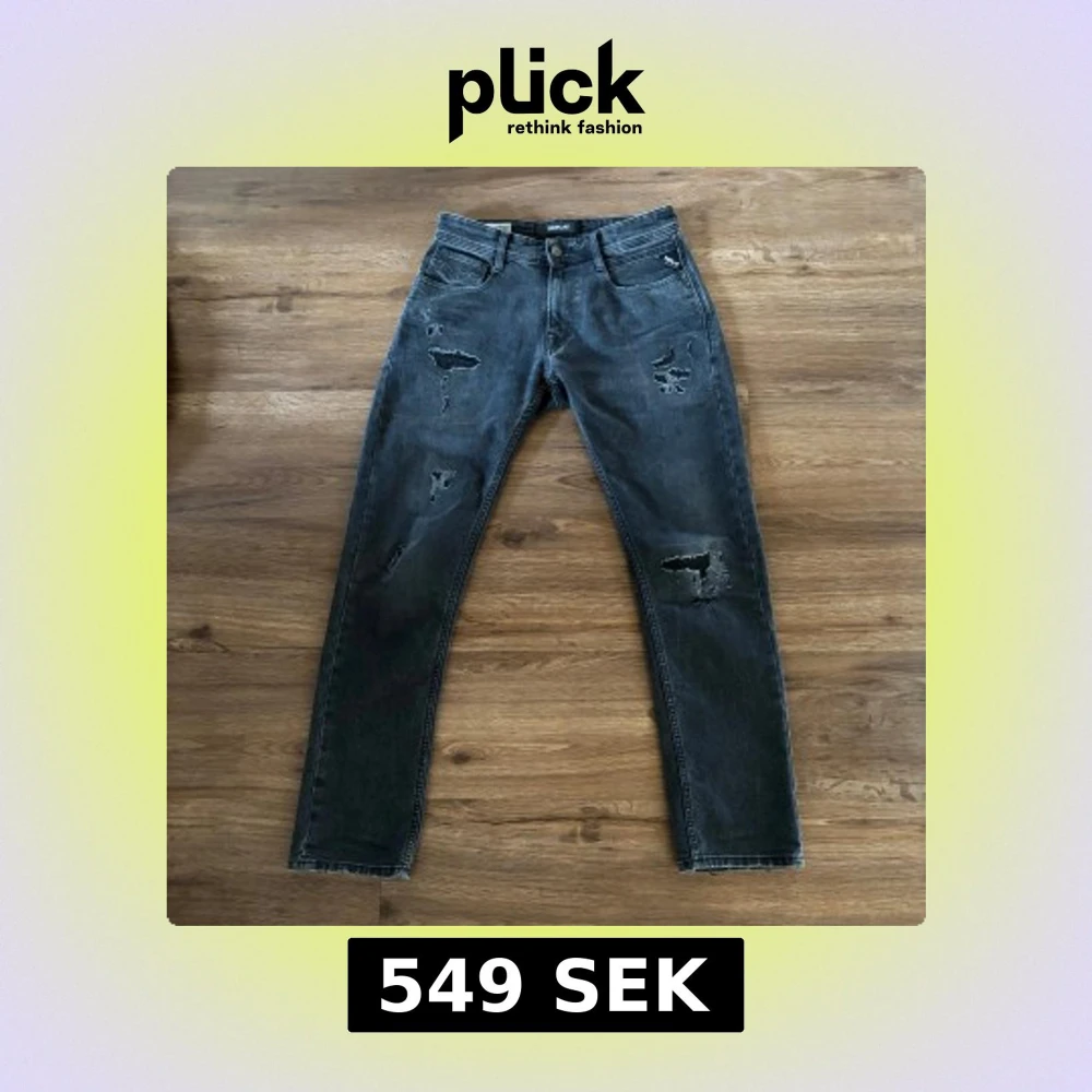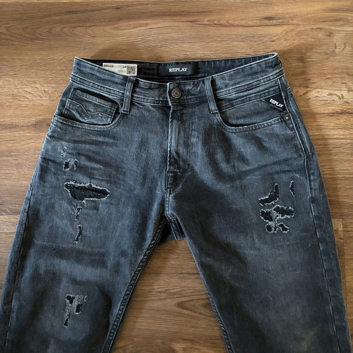 Säljer dessa as feta Replay jeans med slitningar. Färgen är svart/grå. Dom är i ett bra skicka utan defekter. Modellen är rocco (comfort fit) och storleken är 28/30. Priset kan diskuteras!