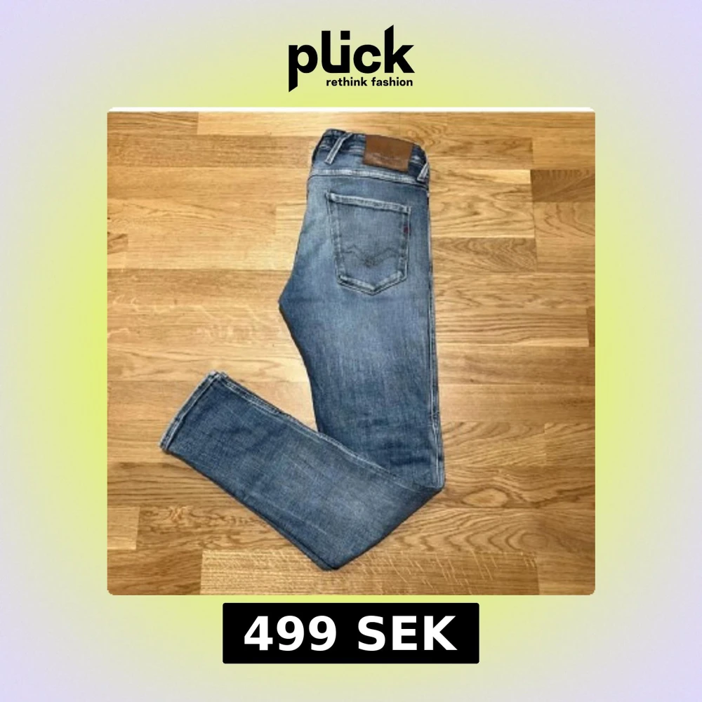 Säljer dessa snygga replay jeans med en slitning på knät! Modell är anbass, fint skick utan skador!