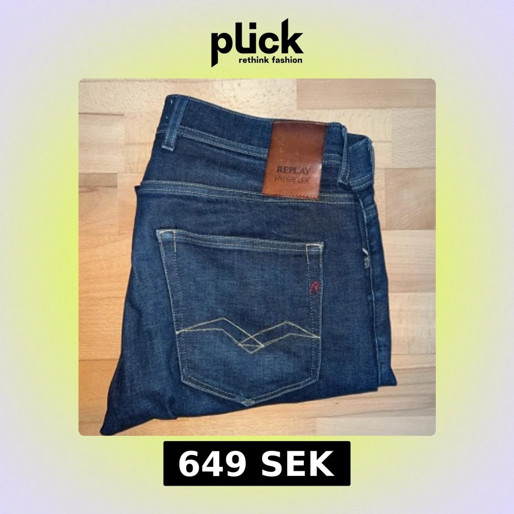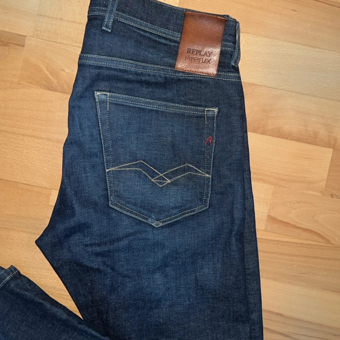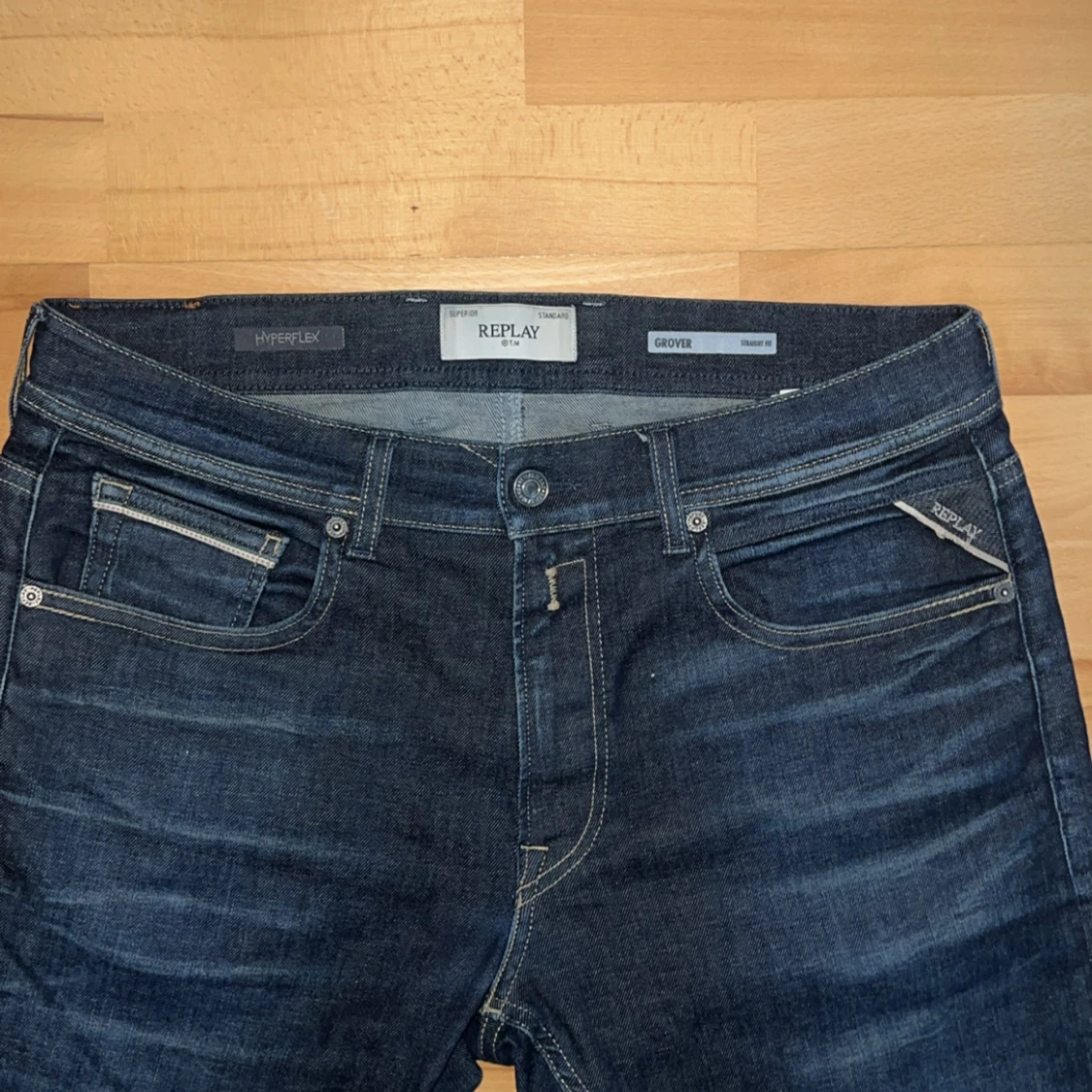 Mörkblå jeans från märket Replay i storlek W33 L32 men passar mindre i midjan . Modellen är Hyperflex Grover alltså straight fit. Jeansen är i bra skick och säljs då jag bytt stil till mer slim. Vid mer funderingar hör gärna av er 😊!
