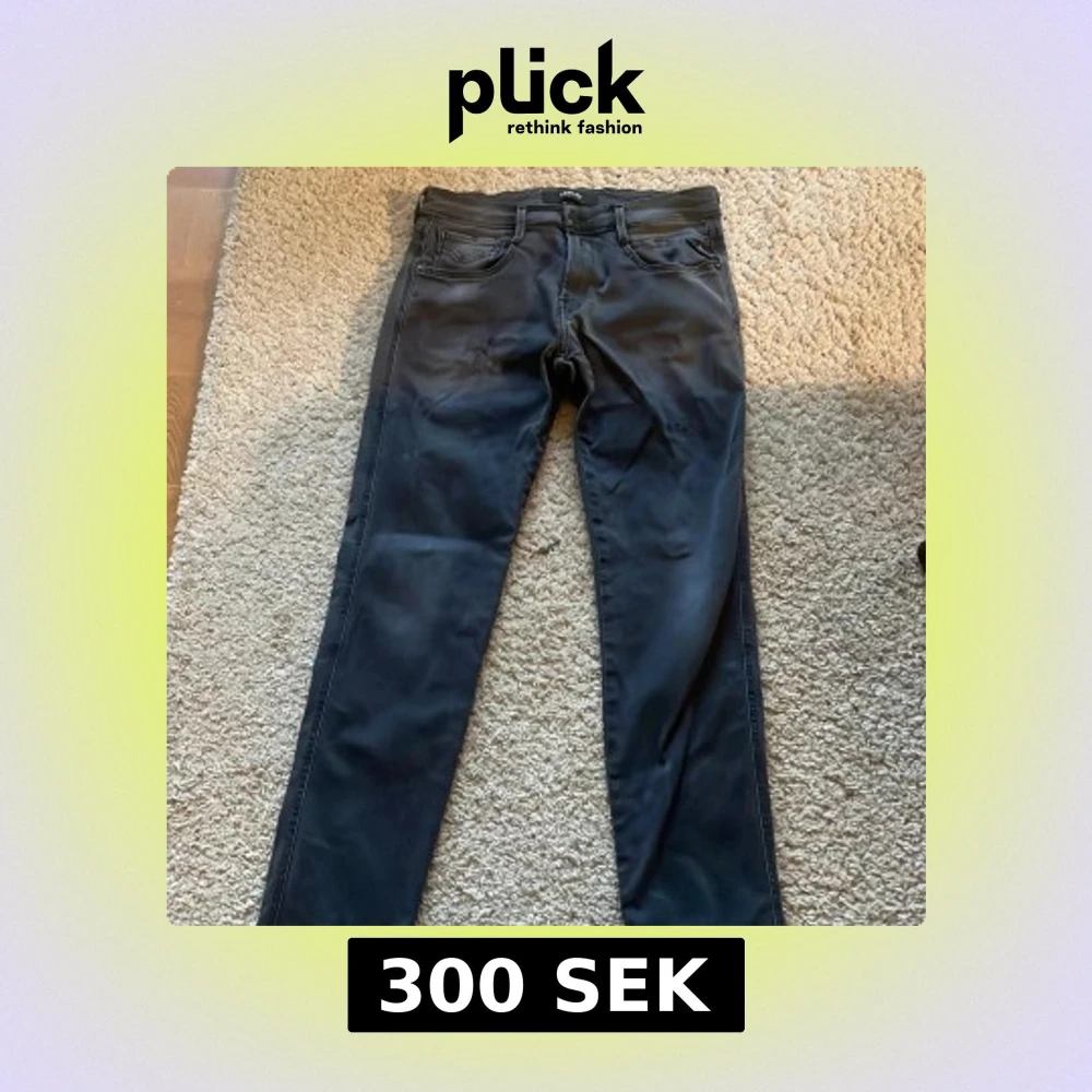 Säljer dessa feta replay anbass i färgen grå/svart. Byxorna har lite diskreta slitningar som är väldigt feta. Storleken är w30 l30