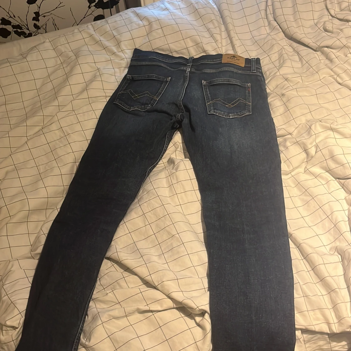 Snygga mörkblå jeans från Replay med klassisk femficksdesign och diskreta slitningar. Modellen har smal passform och raka ben, med detaljerade bakfickor och dragkedja fram. Perfekta för dig som gillar stilrena och bekväma jeans. Skickas helst med instabox