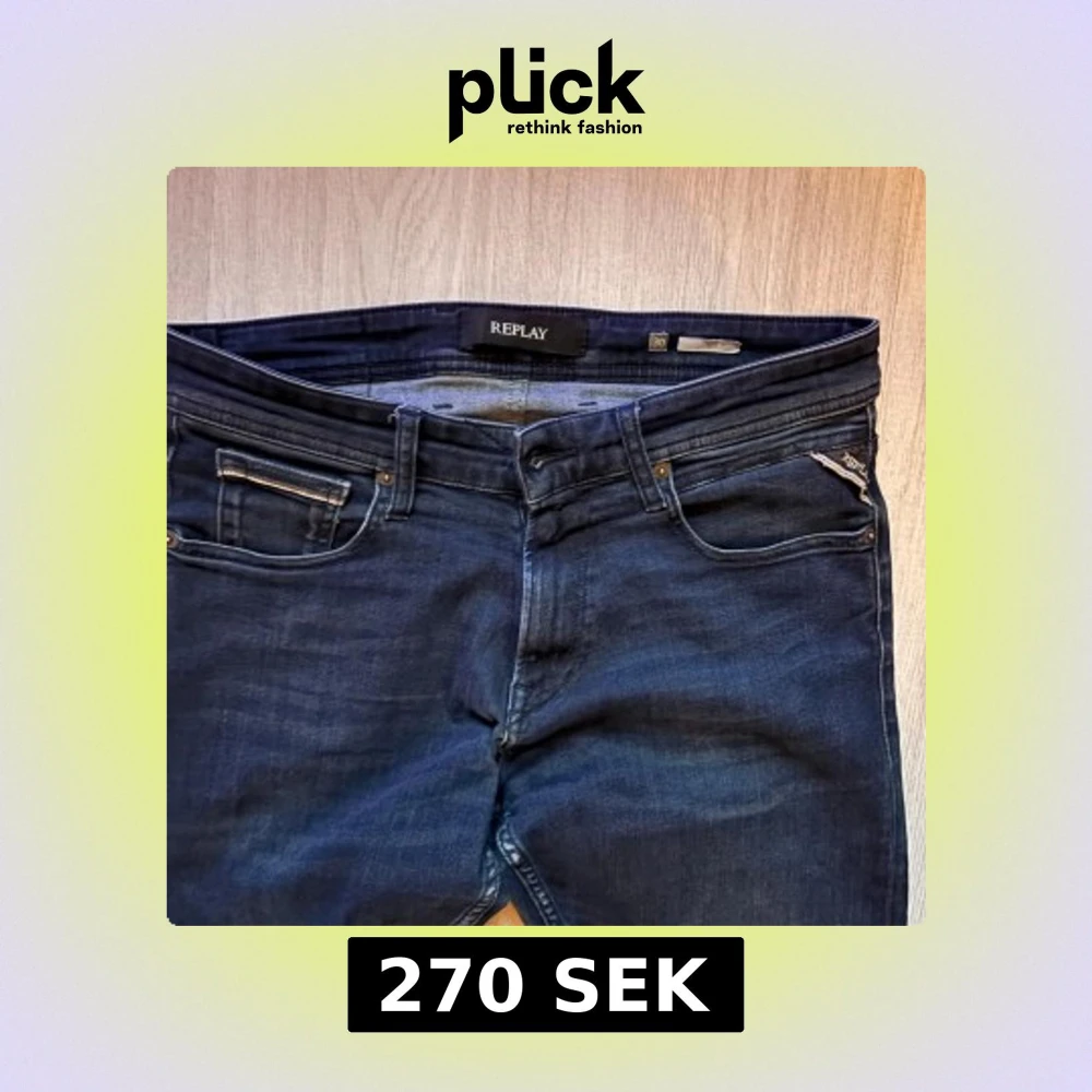Säljer ett par snygga replay jeans. Modellen är Thad och dom är w30 L32. Lite slitna på vissa ställen men fortfarande finna. Grenen och vid backfickan är det lite slitet men vid backfickan syns det inte läder saken där bak är också sliten skriv för bild. Fraktas inom 48 timmar