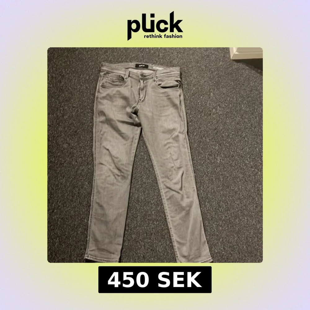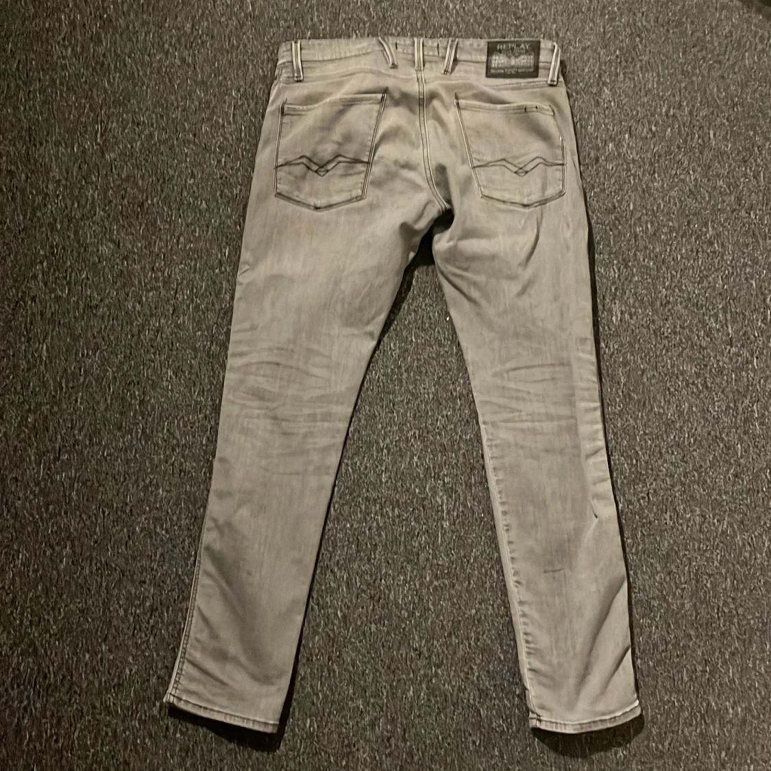 Säljer mina replay anbass jeans, köpte dom nyligen och använt dom ett fåtal gånger men inget som syns på byxorna Säljer då dom e lite stora i midjan på mig