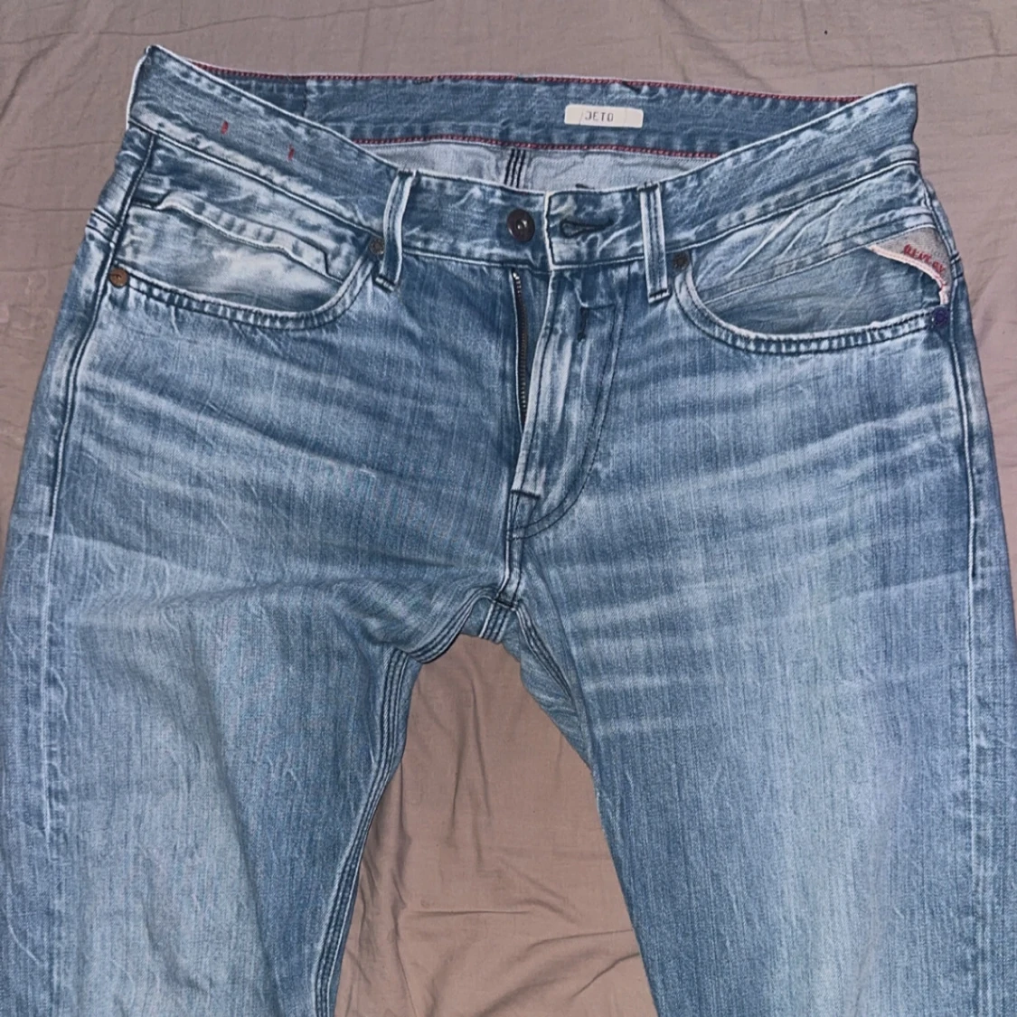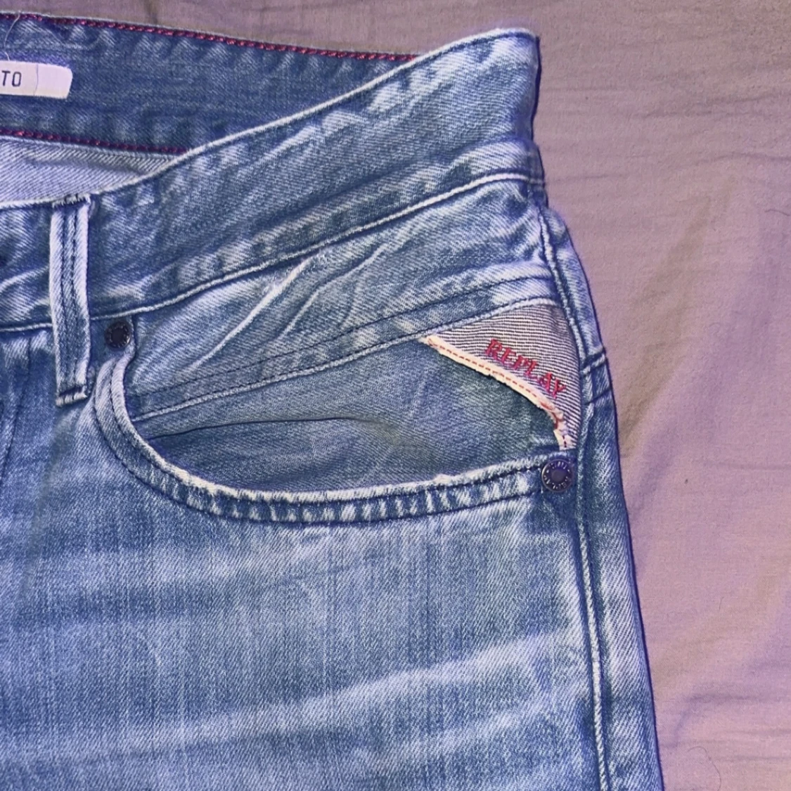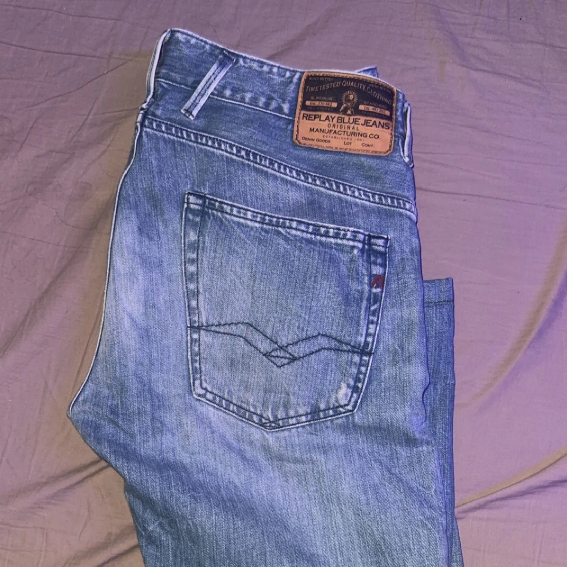 Tjena! Säljer dessa skit snygga replay JETO jeans. Finns små slitningar som jag personligen tycker passar bra med jeansen. W 32 L 34 OBS! De är sydda längst ner så de är antagligen någon storlek kortare, men passar på mig som är 185 :)