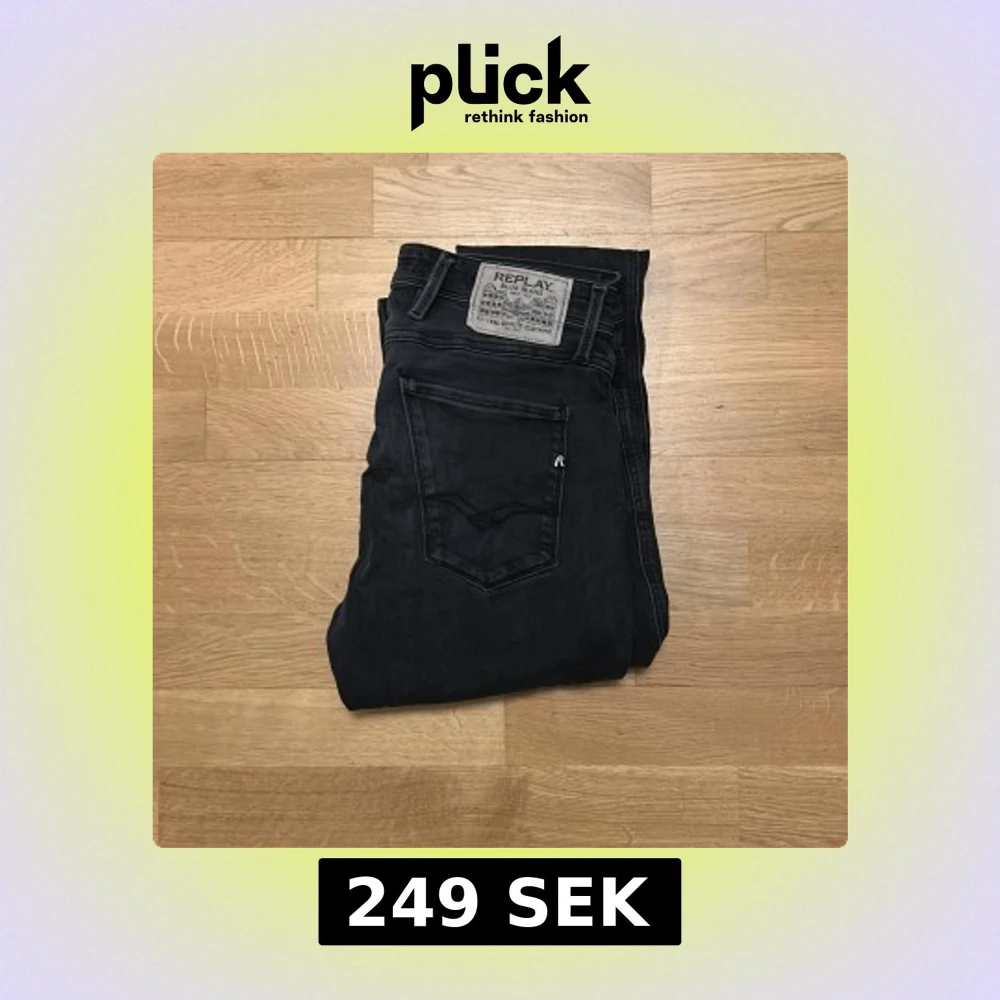 Snygga svarta Replay Anbass jeans med klassisk femficksdesign och raka ben. Jeansen har en diskret logga på bakfickan och är tillverkade i mjukt jeansmaterial med stretch för extra komfort. Passformen är slim och midjan är normal. Perfekta för dig som gillar stilrena och moderna jeans. Lite skavanker i skrevet och på ett av benen ingeting man ser vid användning