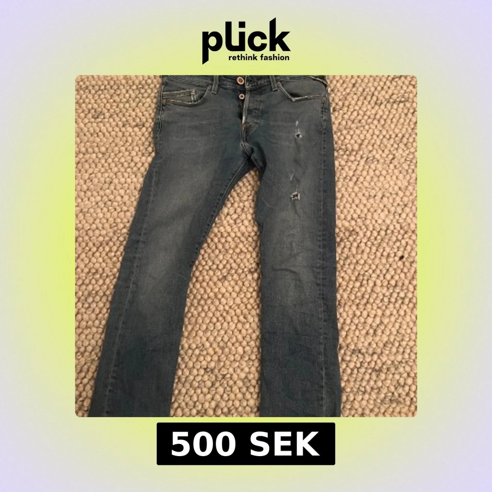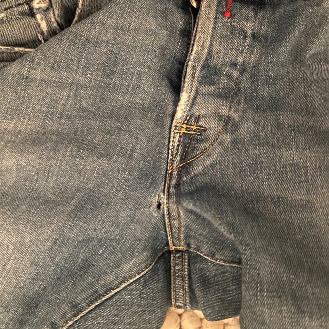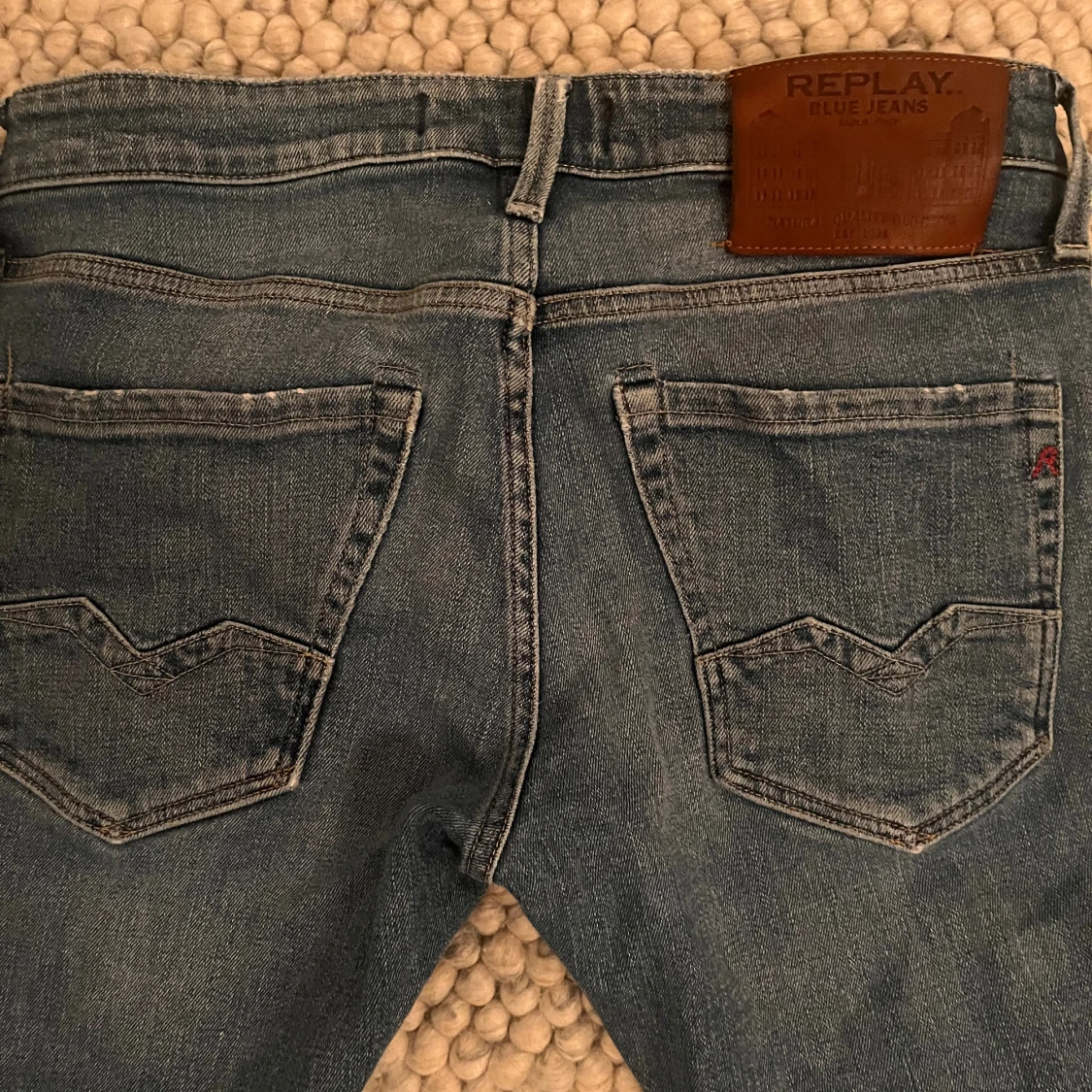 Replays jeans med små slitningar och små röda detaljer vilket gör jeansen riktigt feta! Priset går att diskutera! OBS ett litet hål under knapparna i skrevet men det märks knappt!