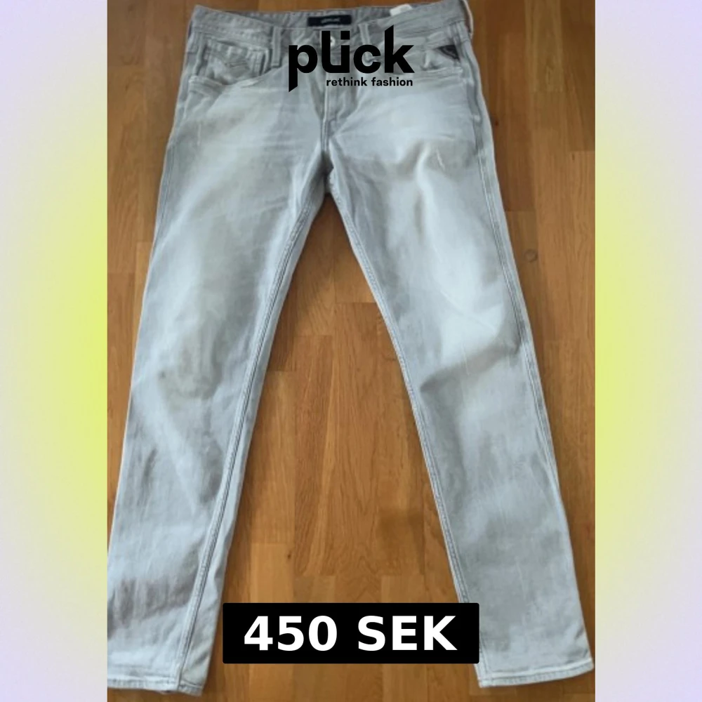 Säljer ett par snygga Replay jeans i ljusgrå