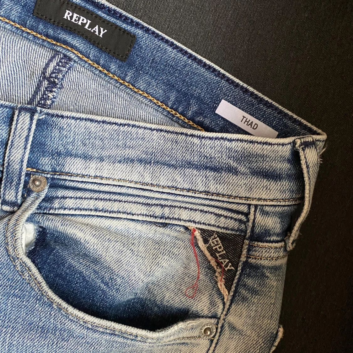 Ett par Replay jeans i fint skick ba en liten tråd som är lös (Replay loggan bild 4), de är storlek 158 men skulle säga att man kan ha de om man har 27/30 ish elr 170. Kom med frågor🙌