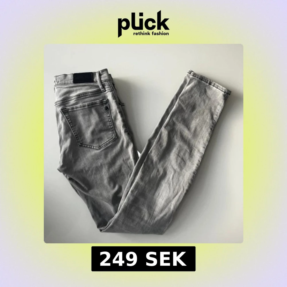 Snygga grå jeans från Replay med klassisk femficksdesign och svarta läderpatch bak i midjan. Modellen har smal passform och raka ben, perfekt för dig som gillar stilrena och moderna jeans. Materialet är mjukt och följsamt jeans. W27 L32