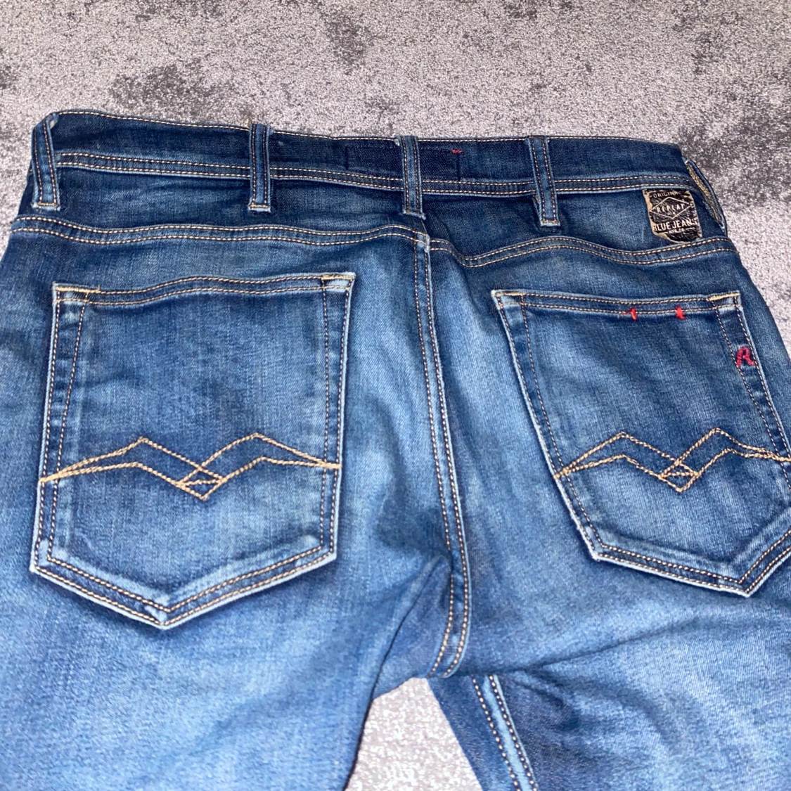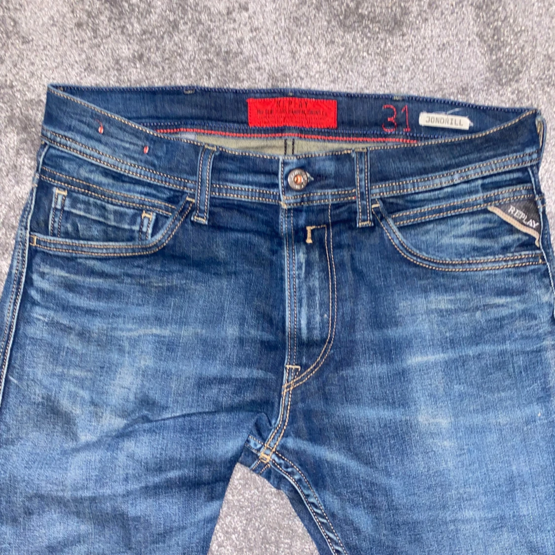 Snygga blå Replay Jondrill jeans med klassisk femficksdesign och kontrastsömmar. Modellen har en slim passform och raka ben, med detaljerade bakfickor och Replay-logga. Perfekt för dig som gillar stilrena och moderna jeans.