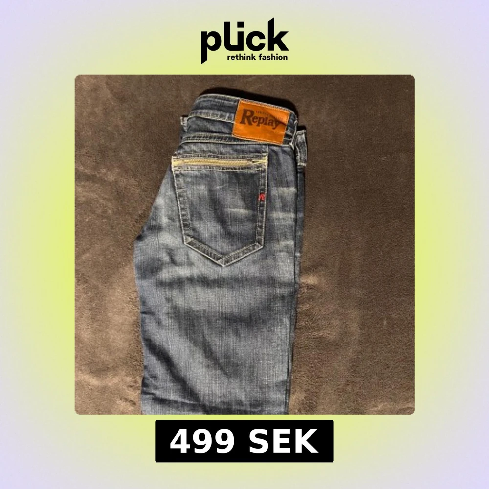 Snygga blå jeans från Replay med klassisk femficksdesign och en läderpatch med logga på baksidan. Jeansen har en normal passform och är tillverkade i slitstarkt denim. Perfekta för en avslappnad stil. Storlek W30 L32