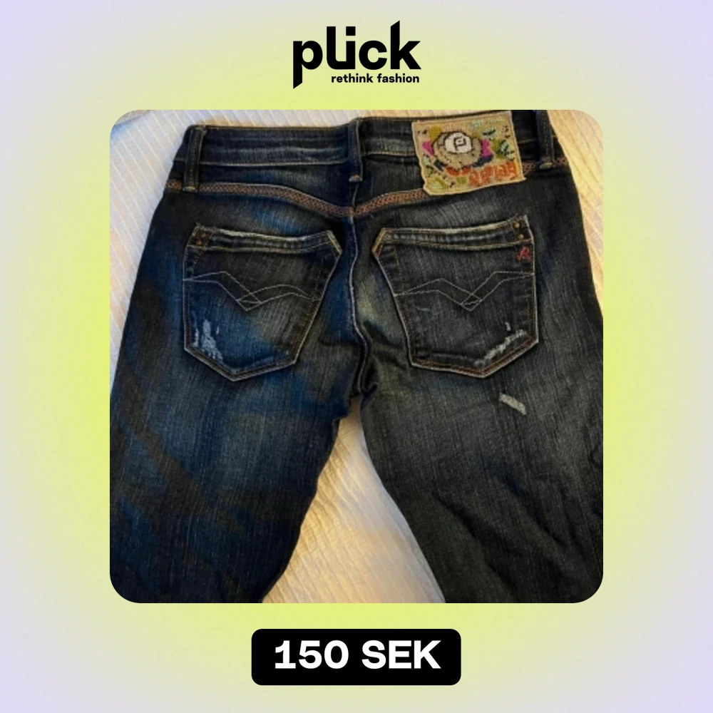 Sjukt snygga lågmidjade jeans som inte passar. Köptes på vinted för 150 kr, men då de inte passade så tönkte jag sälja de. De är i storlek 26, men jag skulle uppskatta att de är i ungeäfr xxs/xs 💞💞