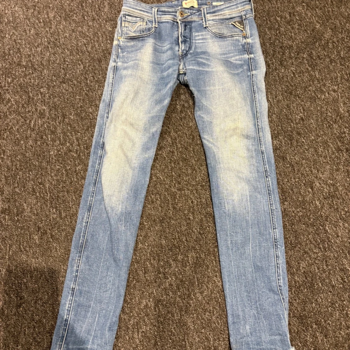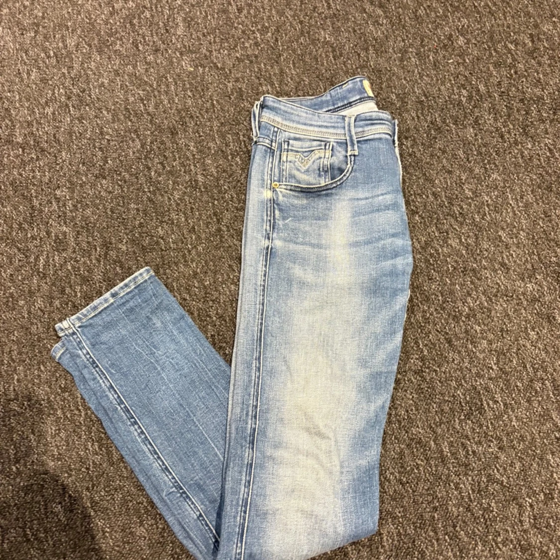 Snygga ljusblå jeans från Replay med klassisk femficksdesign och raka ben. Jeansen är i storlek W29 L32. Byxorna är i ett riktigt bra skick!
