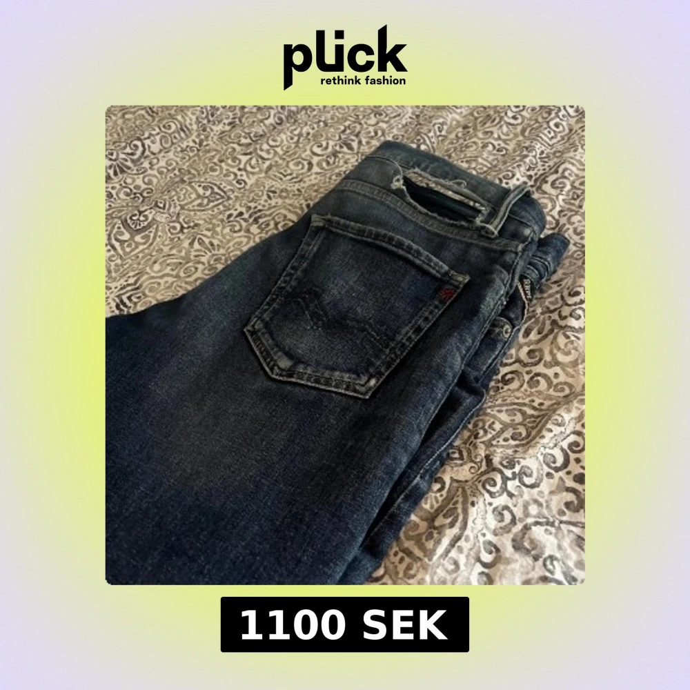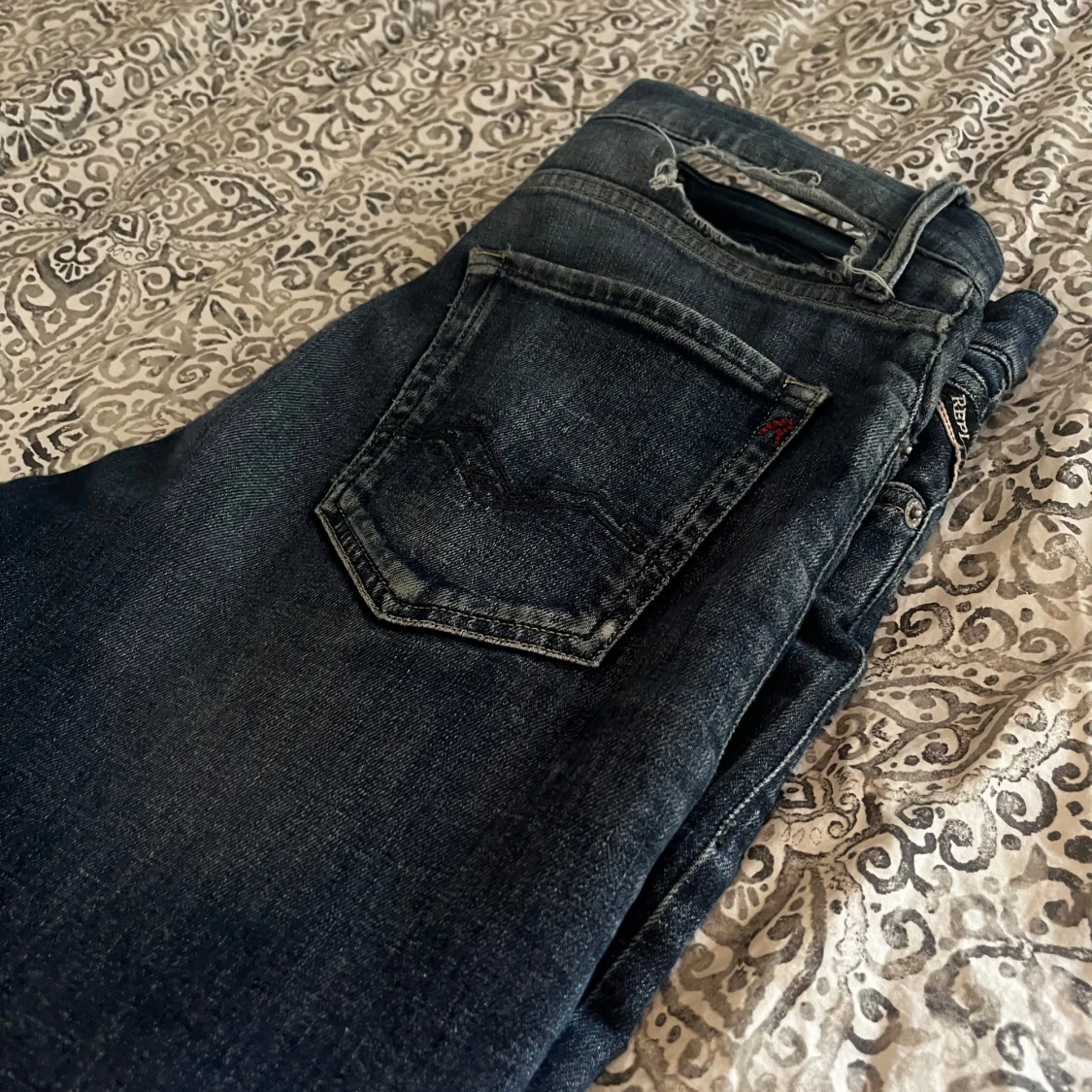 Snygga mörkblå jeansbyxor från Replay med klassisk femficksdesign och diskreta slitningar framtill. Jeansen har normal passform och är perfekta för en avslappnad stil. Märkeslogga syns på fickan och insidan av linningen.